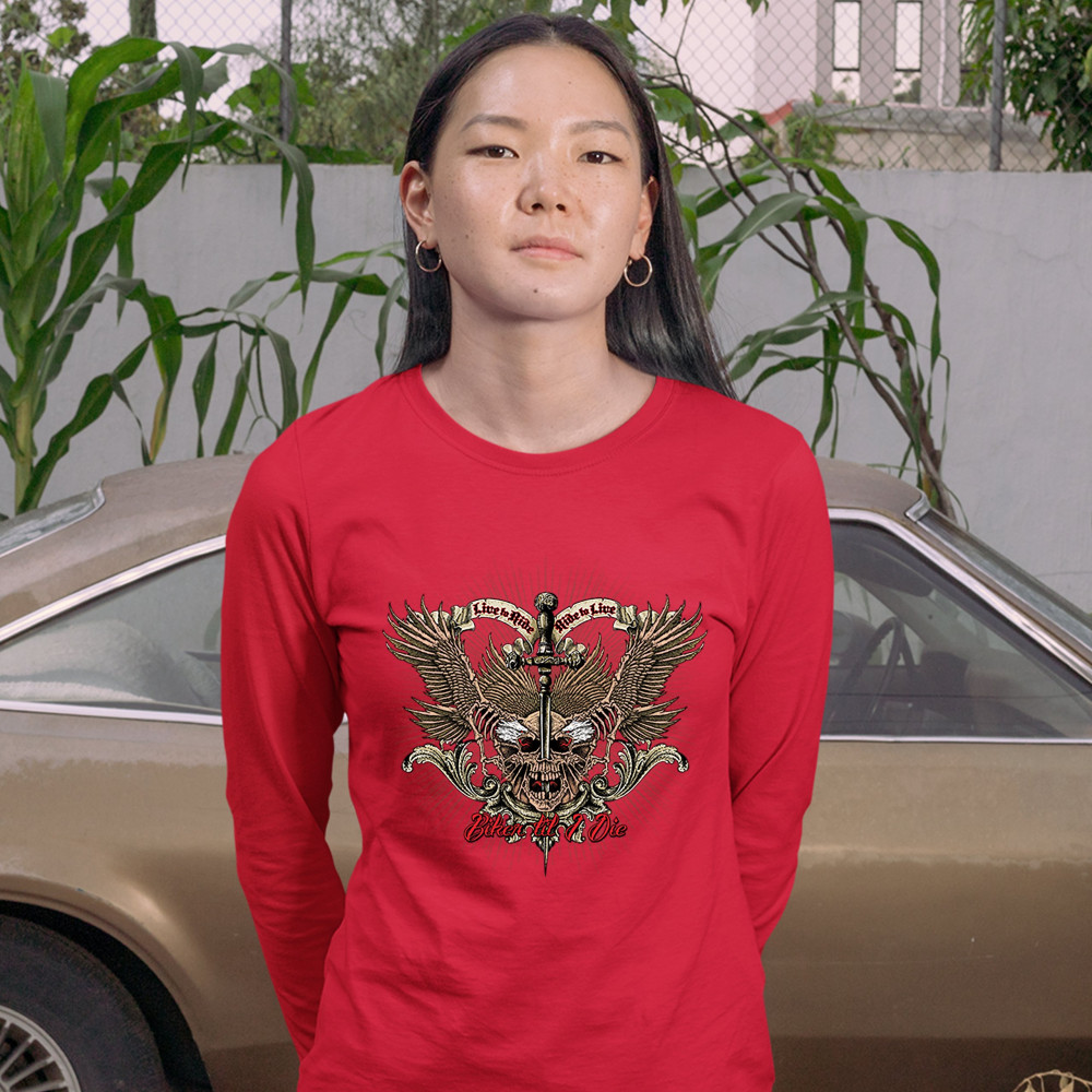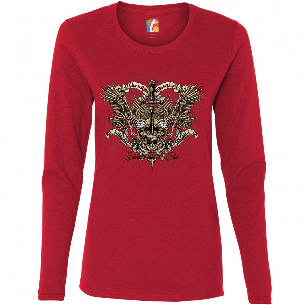BIKER TIL I DIE women's long sleeve t-shirt live to ride biker forever skull red