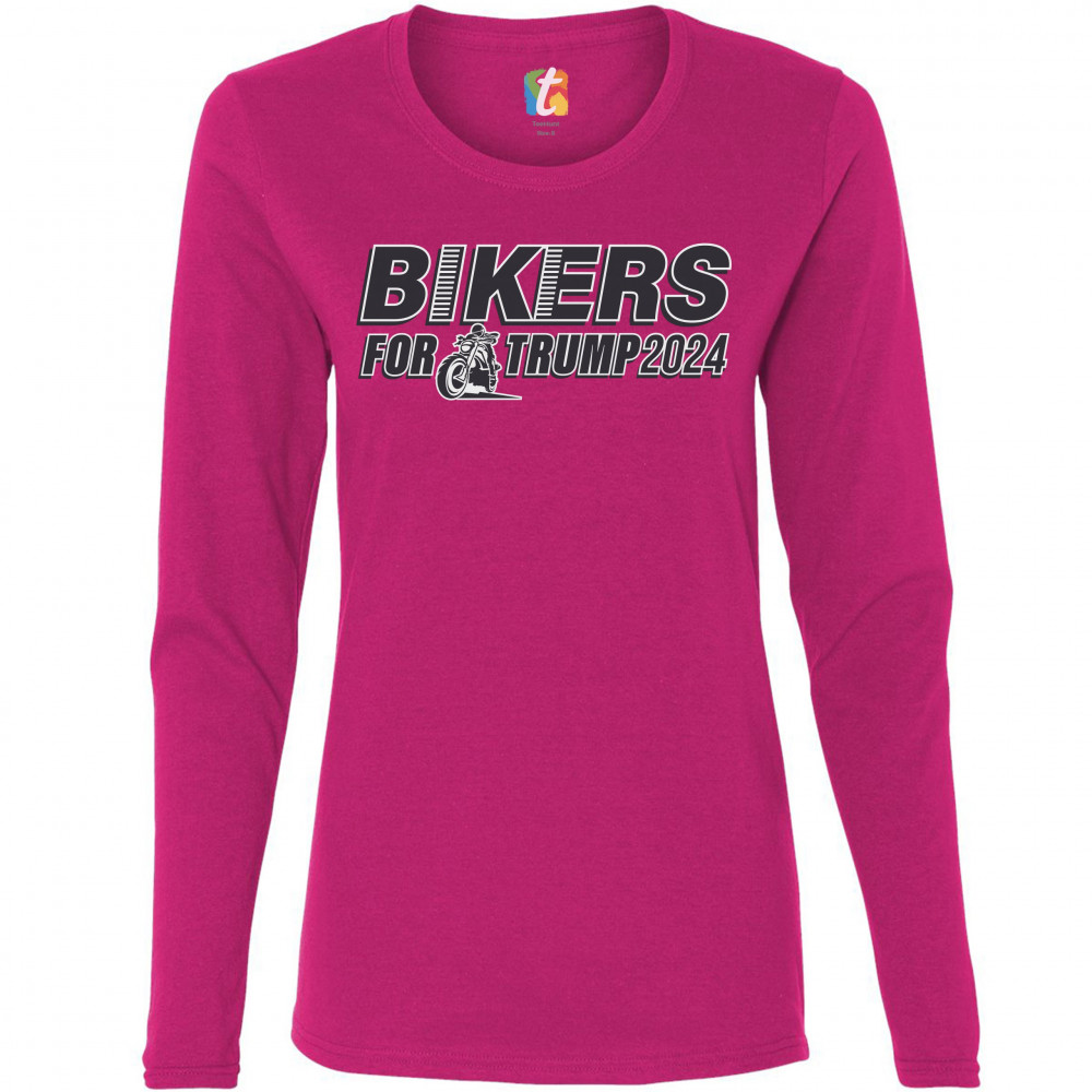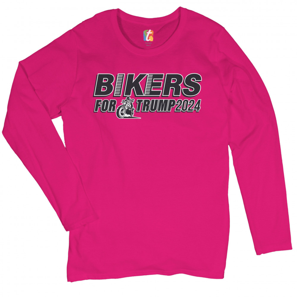 BIKERS FOR TRUMP 2024 women's long sleeve t-shirt donald trump motorcycle rally pink