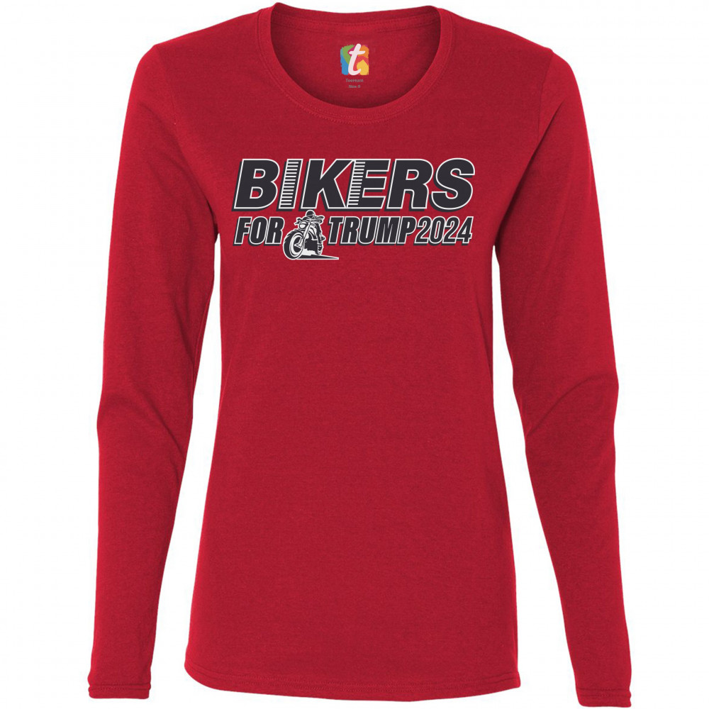 BIKERS FOR TRUMP 2024 women's long sleeve t-shirt donald trump motorcycle rally red