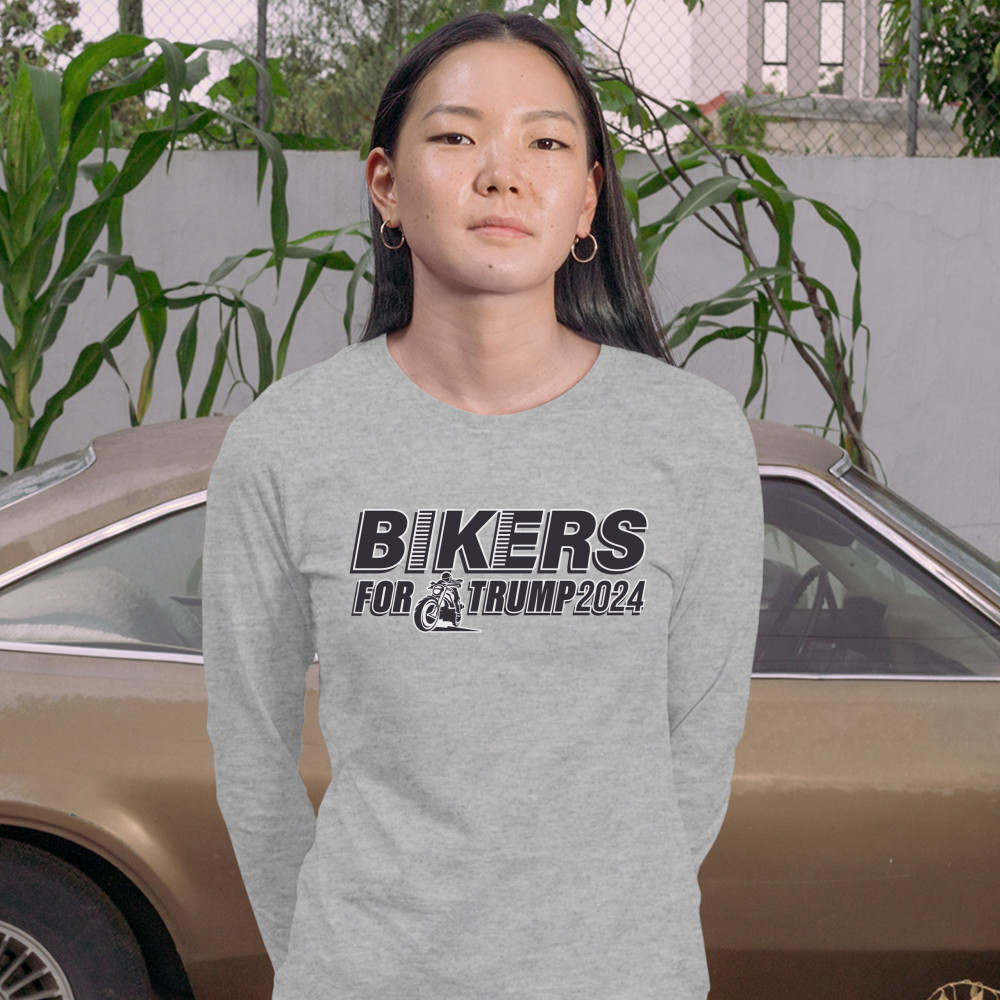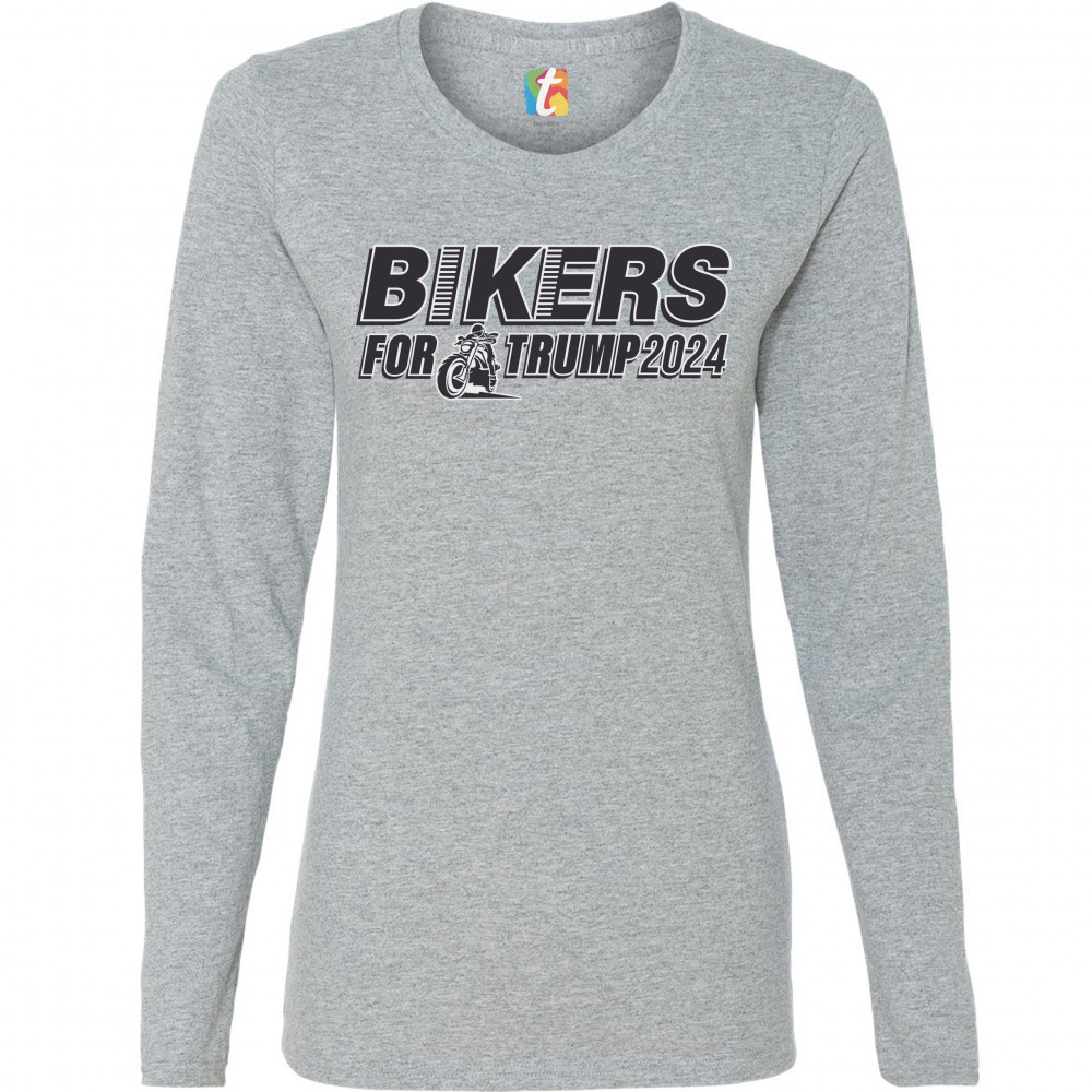 BIKERS FOR TRUMP 2024 women's long sleeve t-shirt donald trump motorcycle rally gray