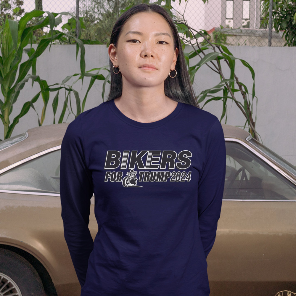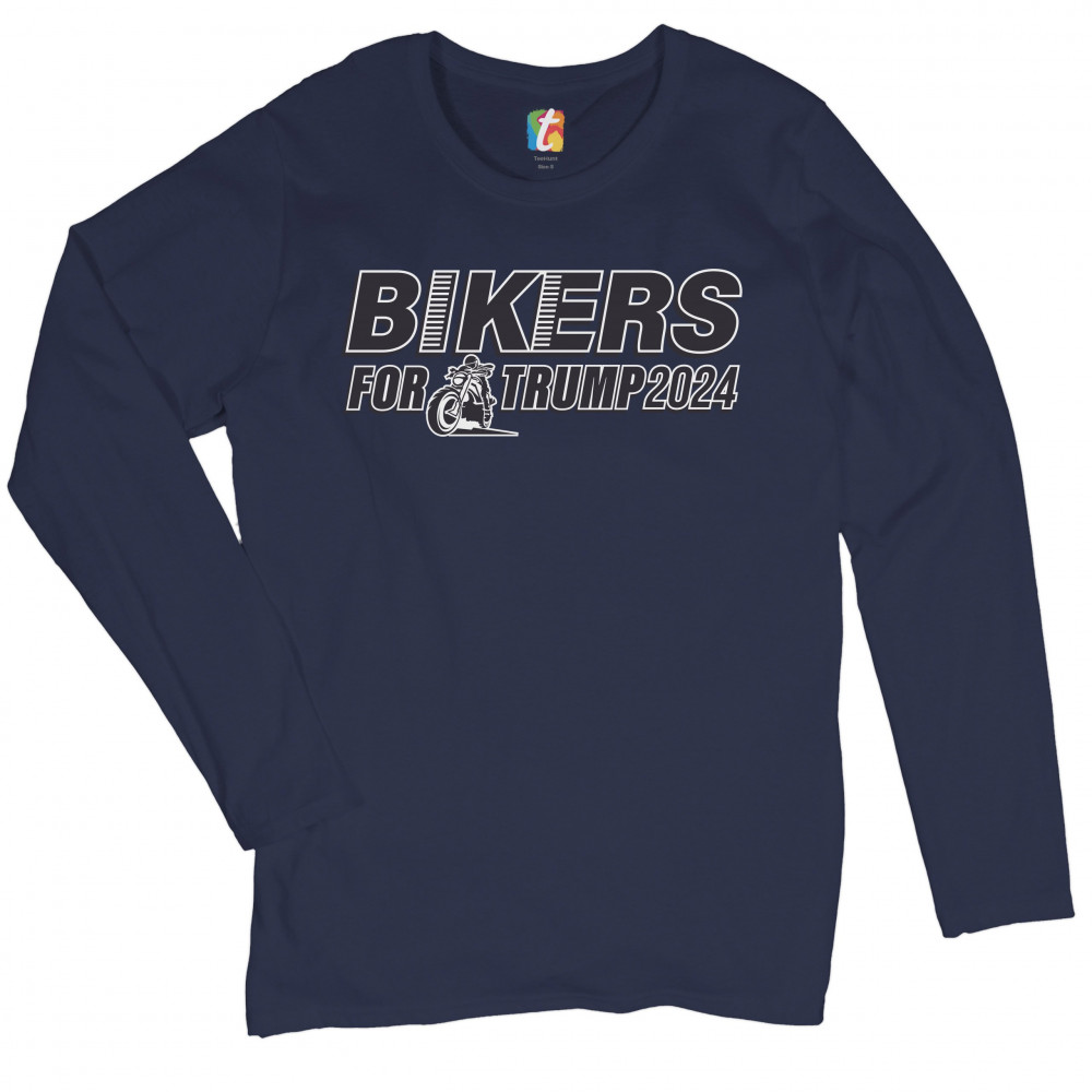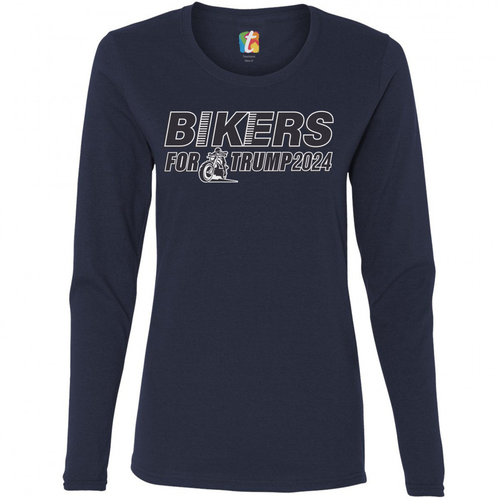 BIKERS FOR TRUMP 2024 women's long sleeve t-shirt donald trump motorcycle rally navy blue
