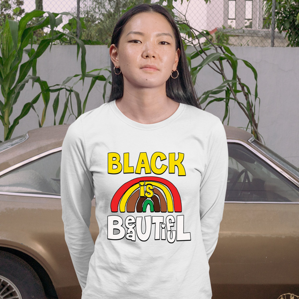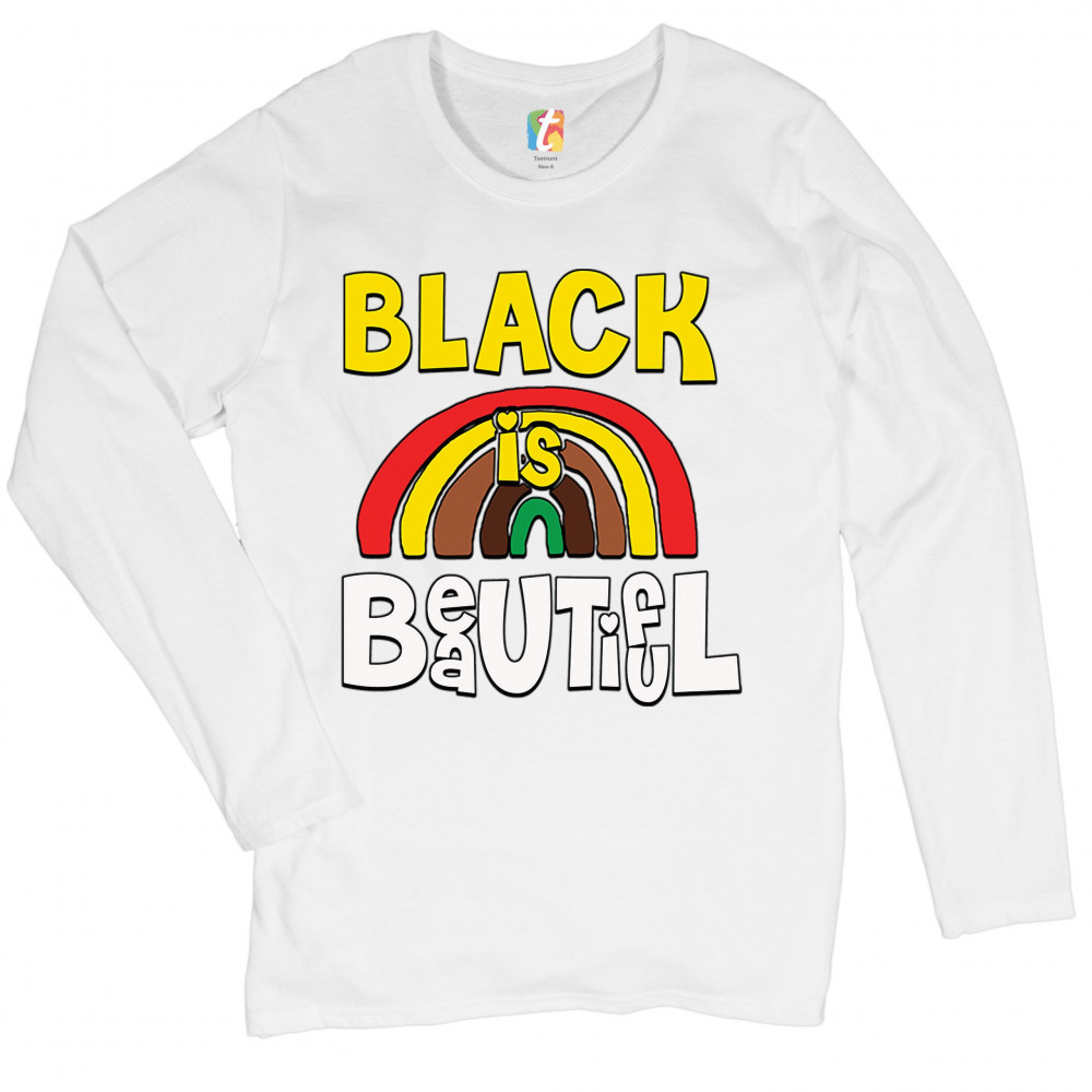 BLACK IS BEAUTIFUL women's long sleeve t-shirt african american black pride white