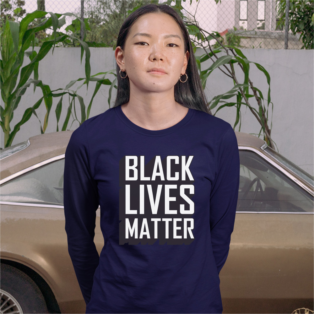 BLACK LIVES MATTER women's long sleeve t-shirt equality human rights protest navy blue