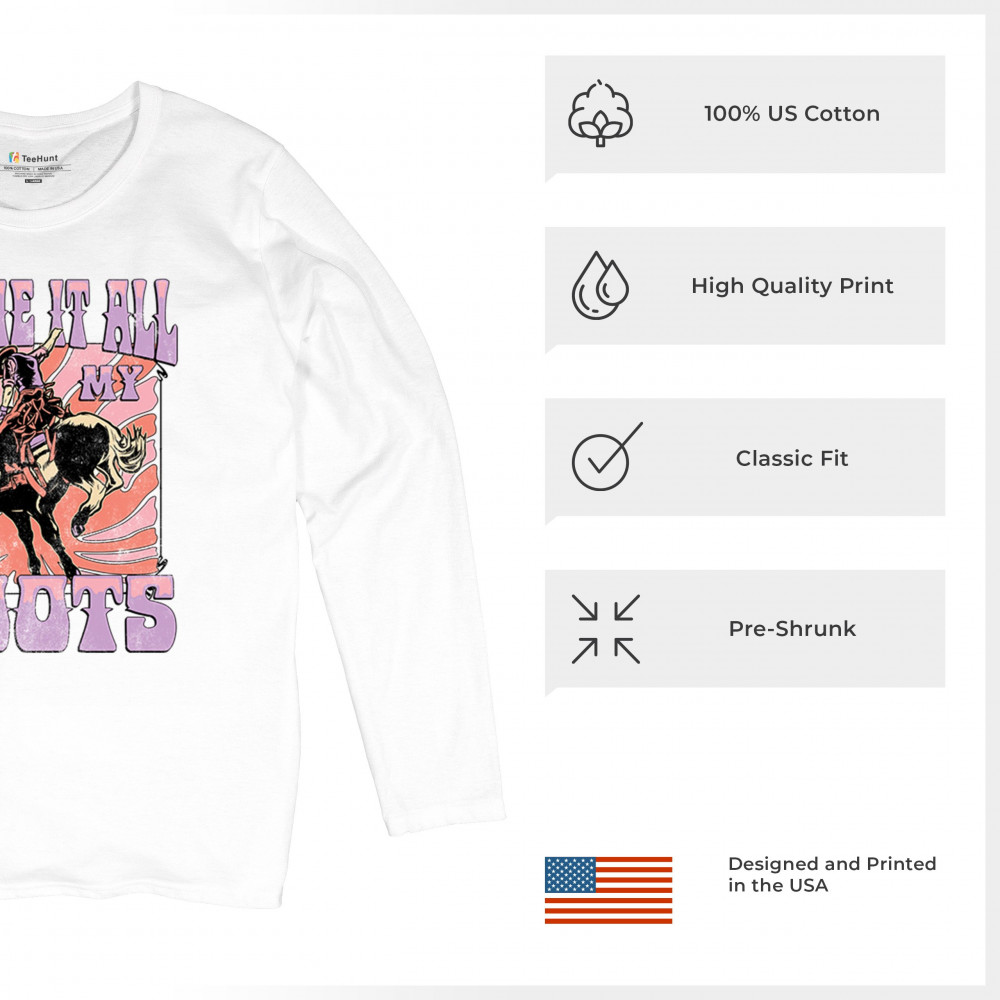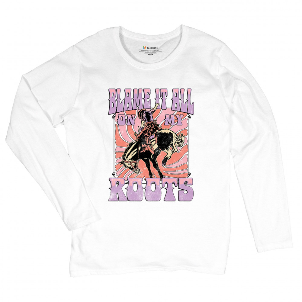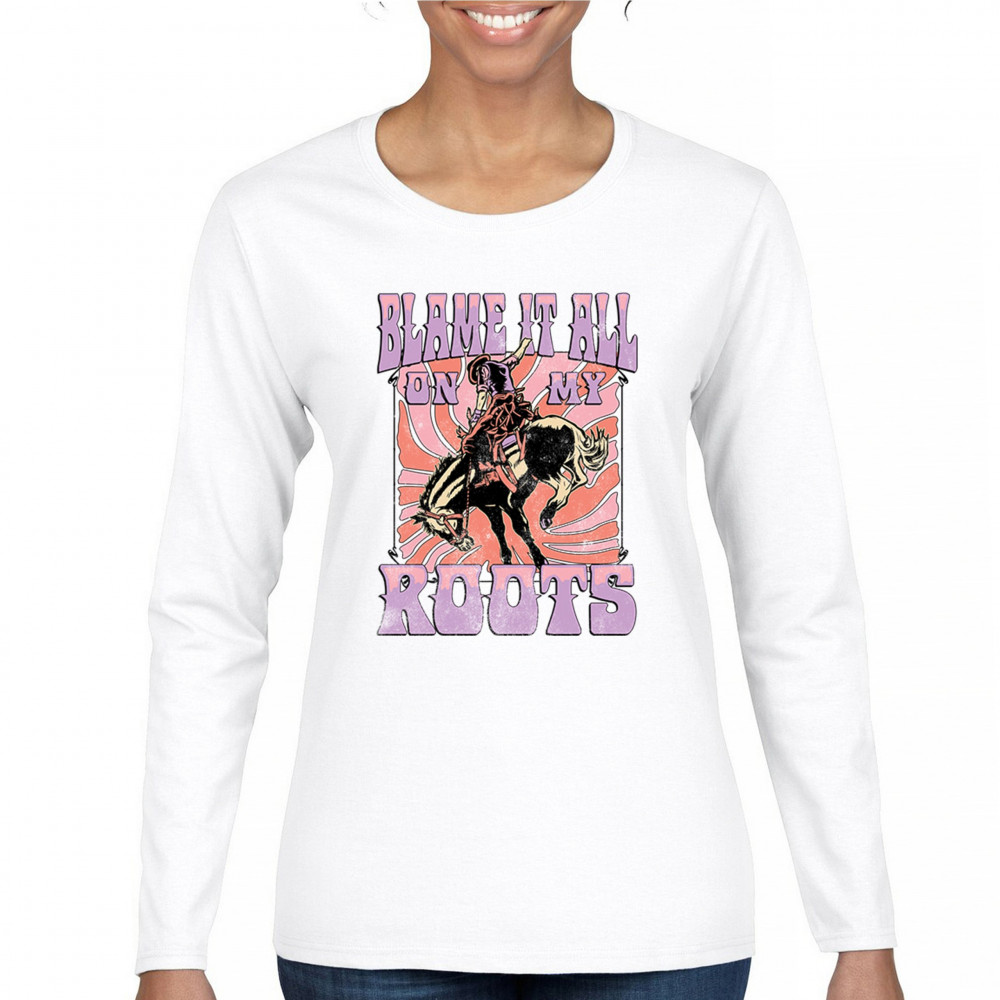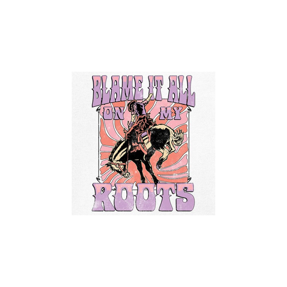 Blame It All On My Roots is vintage country style with rodeo spirit, perfect for small town life, barn dances, and wild country pride.