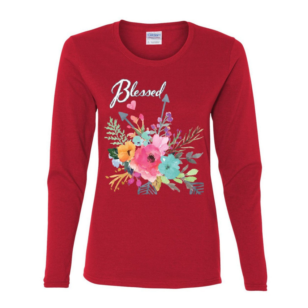 BLESSED women's long sleeve tee love faith hope believer motivation kindness red