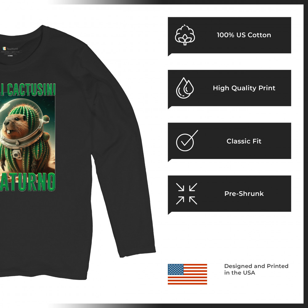 Blast off with Bobrini Cactusini Su Saturno—a cactus-beaver astronaut floating in pure brainrot. This cursed design blends space meme aesthetics, weirdcore fashion, viral Gen Z humor, and surreal animal mashups. It’s the ultimate tee for lovers of ironic internet chaos and absurdist TikTok trends.