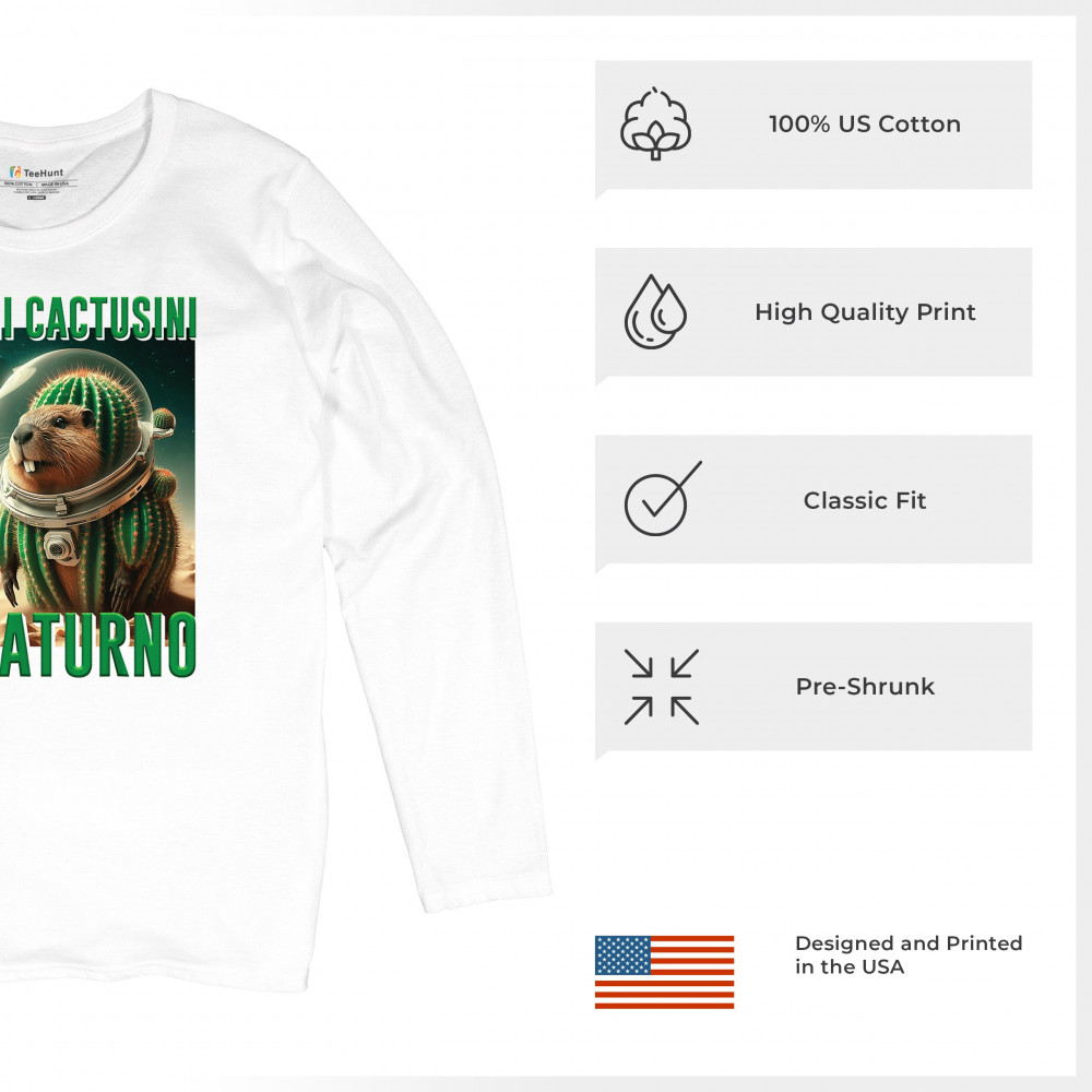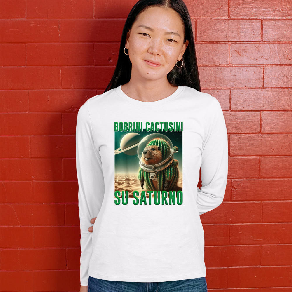 Blast off with Bobrini Cactusini Su Saturno—a cactus-beaver astronaut floating in pure brainrot. This cursed design blends space meme aesthetics, weirdcore fashion, viral Gen Z humor, and surreal animal mashups. It’s the ultimate tee for lovers of ironic internet chaos and absurdist TikTok trends.