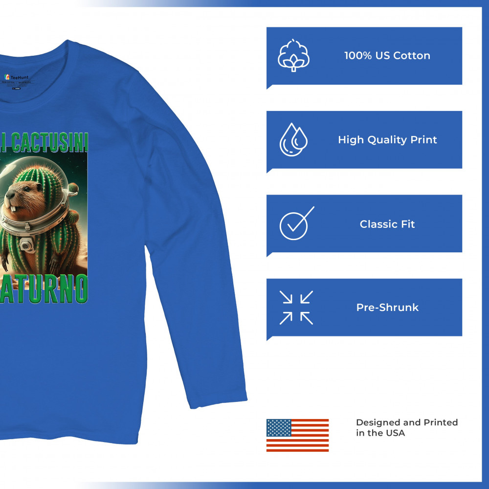 Blast off with Bobrini Cactusini Su Saturno—a cactus-beaver astronaut floating in pure brainrot. This cursed design blends space meme aesthetics, weirdcore fashion, viral Gen Z humor, and surreal animal mashups. It’s the ultimate tee for lovers of ironic internet chaos and absurdist TikTok trends.