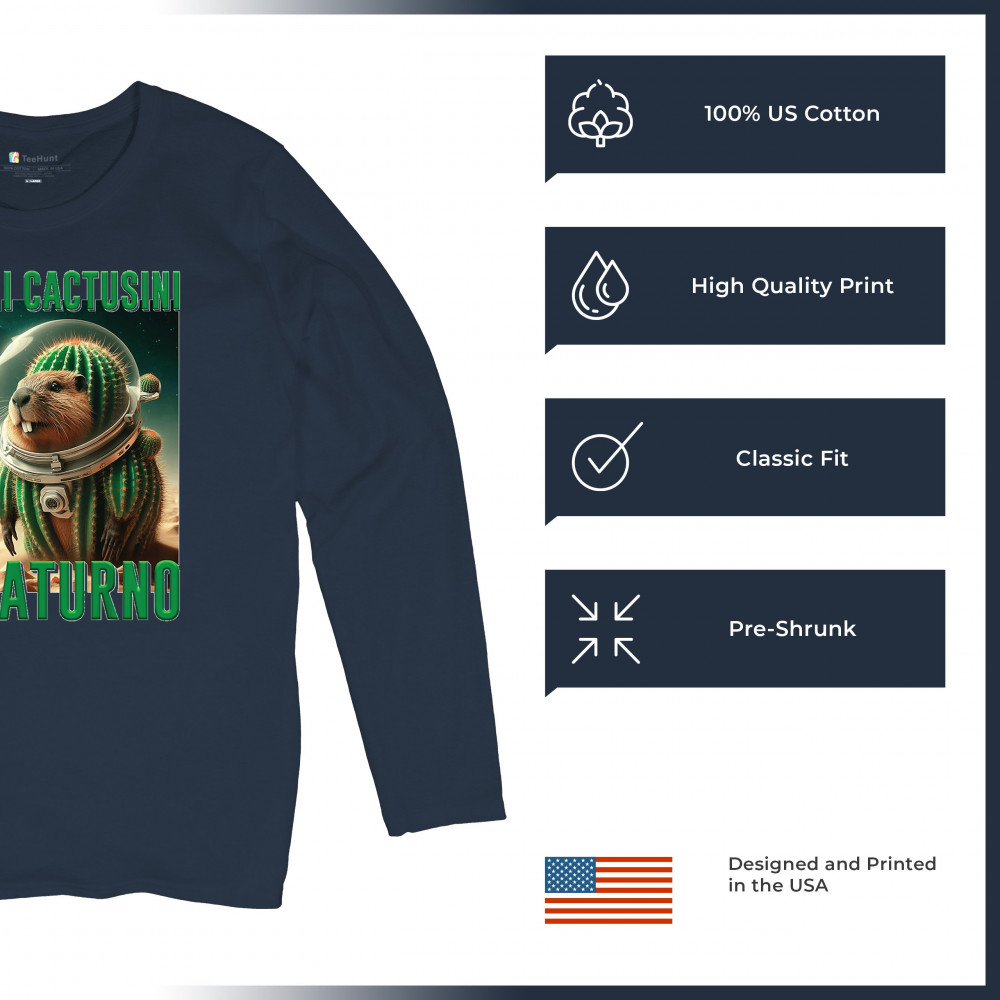 Blast off with Bobrini Cactusini Su Saturno—a cactus-beaver astronaut floating in pure brainrot. This cursed design blends space meme aesthetics, weirdcore fashion, viral Gen Z humor, and surreal animal mashups. It’s the ultimate tee for lovers of ironic internet chaos and absurdist TikTok trends.