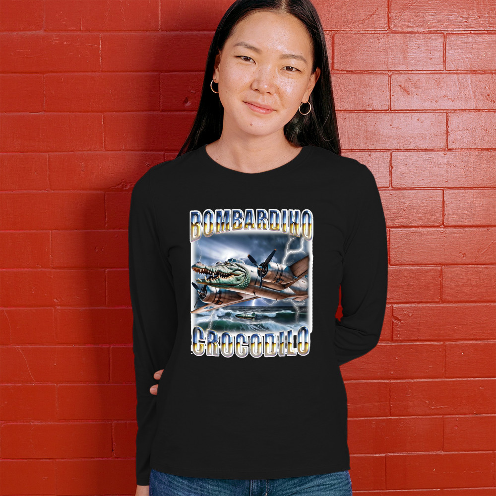 Bombardino Crocodilo is meme fashion with teeth. Featuring a crocodile-faced bomber jet flying through internet chaos, this Italian Brainrot masterpiece blends weirdcore visuals, cursed meme logic, and Gen Z humor. Perfect for fans of surreal fashion, viral absurdity, and TikTok-driven ironic style.