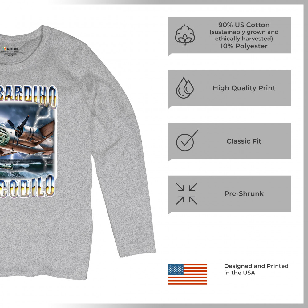Bombardino Crocodilo is meme fashion with teeth. Featuring a crocodile-faced bomber jet flying through internet chaos, this Italian Brainrot masterpiece blends weirdcore visuals, cursed meme logic, and Gen Z humor. Perfect for fans of surreal fashion, viral absurdity, and TikTok-driven ironic style.
