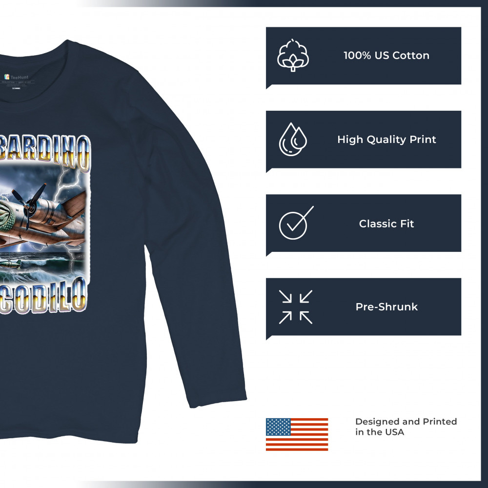 Bombardino Crocodilo is meme fashion with teeth. Featuring a crocodile-faced bomber jet flying through internet chaos, this Italian Brainrot masterpiece blends weirdcore visuals, cursed meme logic, and Gen Z humor. Perfect for fans of surreal fashion, viral absurdity, and TikTok-driven ironic style.
