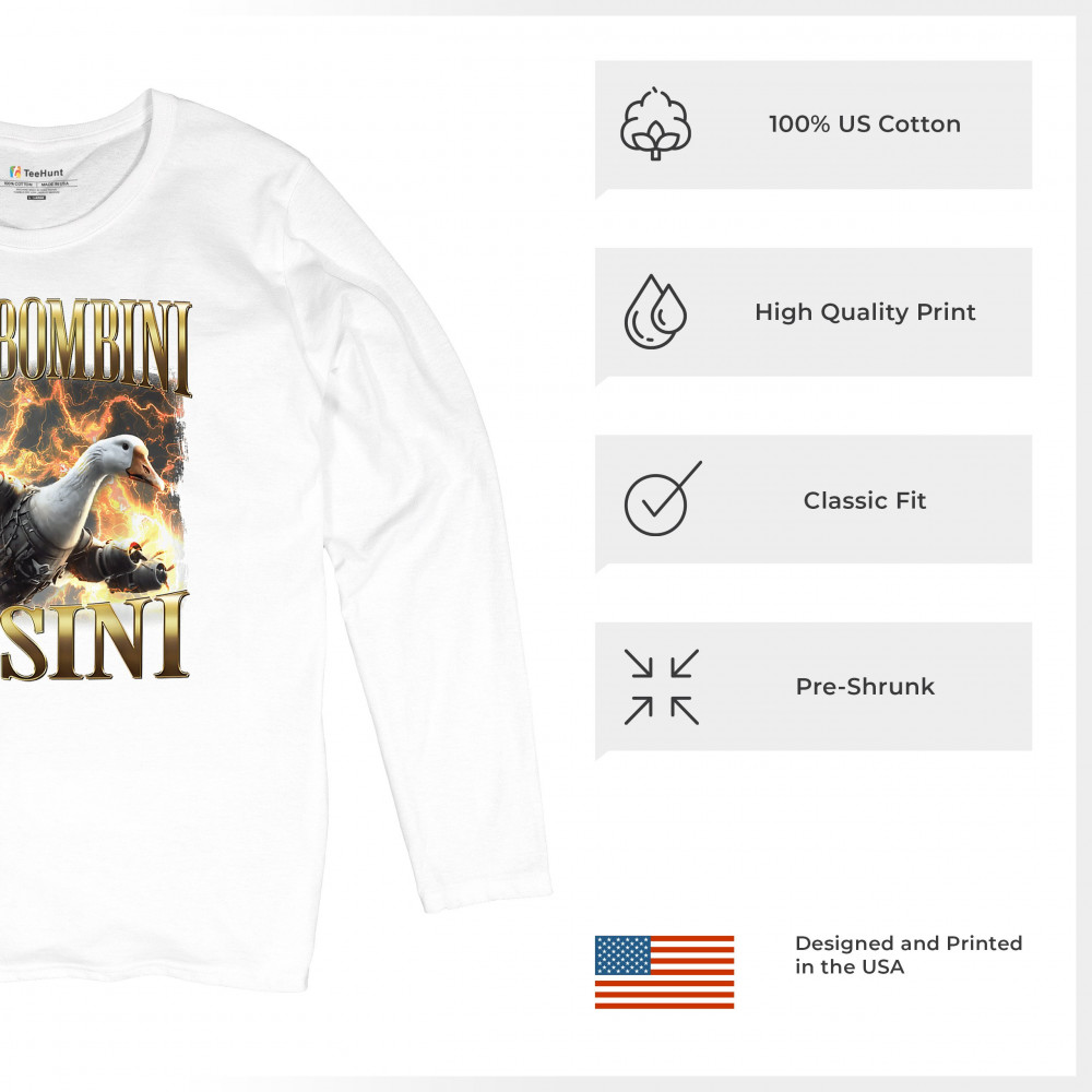 Bombombini Gusini is meme chaos at Mach speed. Featuring a mechanized goose powered by pure Italian Brainrot energy, this design blends cursed-core humor, Gen Z absurdity, ironic fashion, and weirdcore visuals. Perfect for animal meme fans, TikTok-core addicts, and anyone whose humor is completely unhinged.