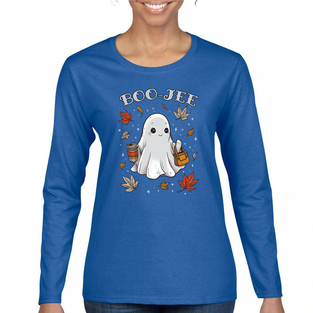 Get in the Halloween spirit with this playful Boo-Jee cute ghost design featuring a funny pumpkin head, cozy candy bucket, and spooky-scary charm. Great for trick or treat fun, haunted house parties, autumn leaves strolls, or sipping coffee on a crisp fall night, this shirt blends festive vibes with seasonal style. Perfect for anyone who loves Halloween fun and cozy fall flair.