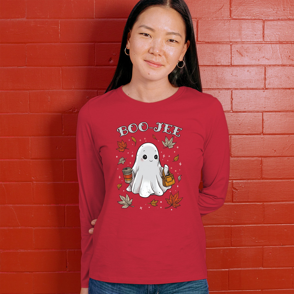 Get in the Halloween spirit with this playful Boo-Jee cute ghost design featuring a funny pumpkin head, cozy candy bucket, and spooky-scary charm. Great for trick or treat fun, haunted house parties, autumn leaves strolls, or sipping coffee on a crisp fall night, this shirt blends festive vibes with seasonal style. Perfect for anyone who loves Halloween fun and cozy fall flair.