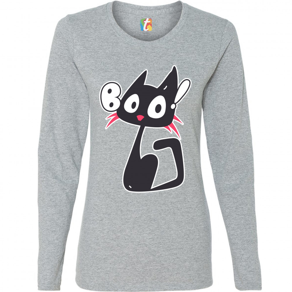 BOO KITTEN women's long sleeve t-shirt happy halloween trick-or-treating cat gray