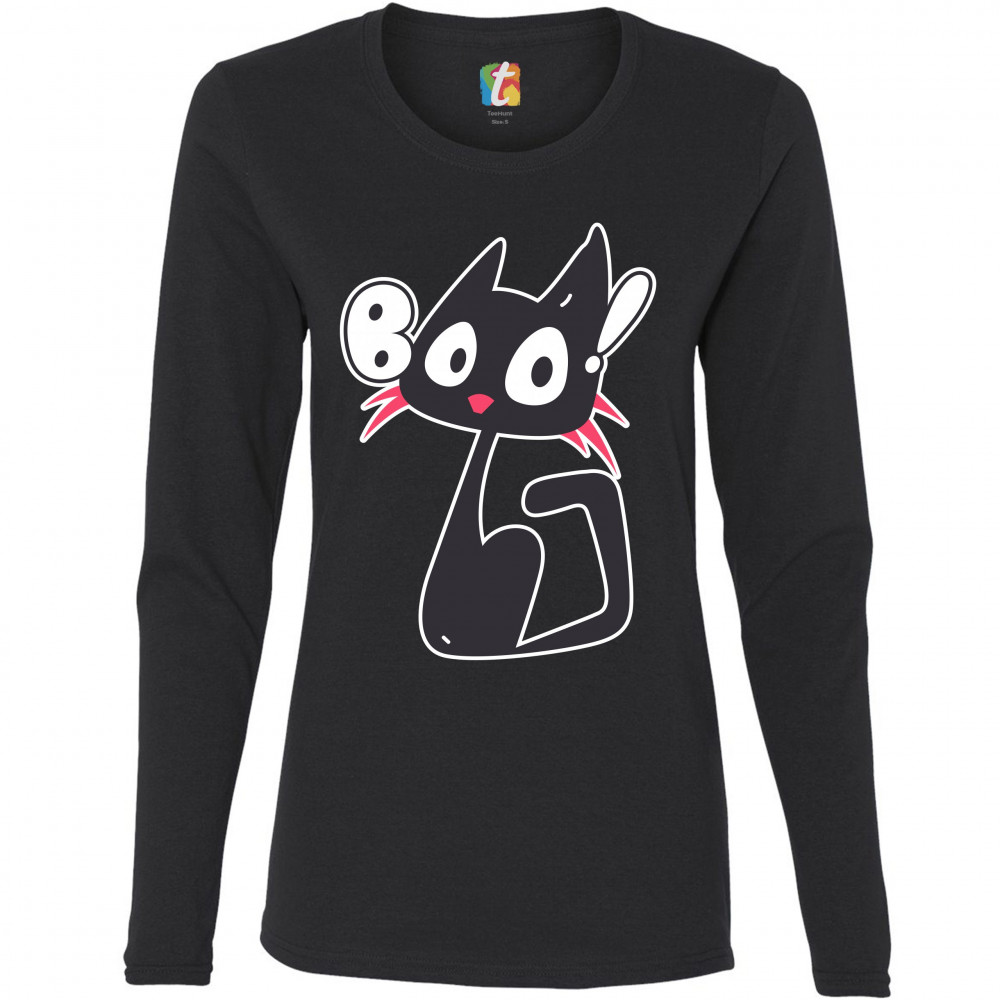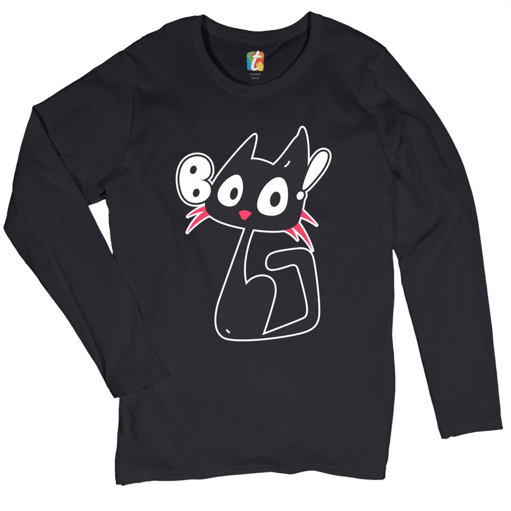 BOO KITTEN women's long sleeve t-shirt happy halloween trick-or-treating cat black