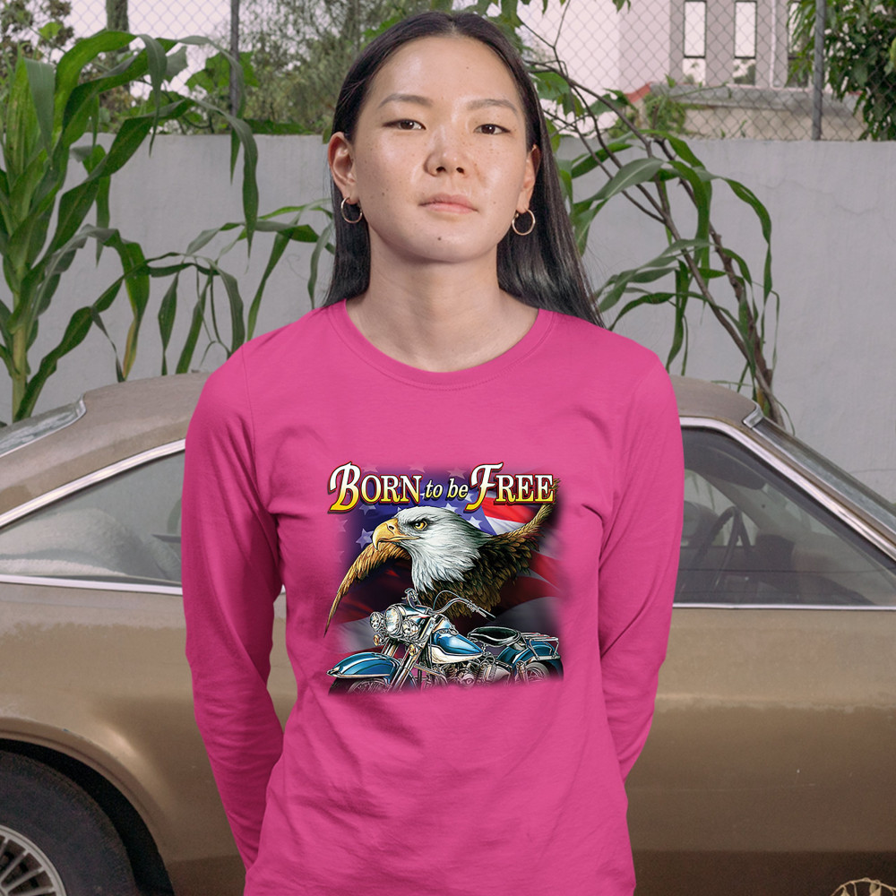 BORN TO BE FREE women's long sleeve t-shirt american bald eagle chopper biker pink