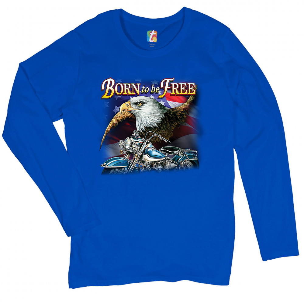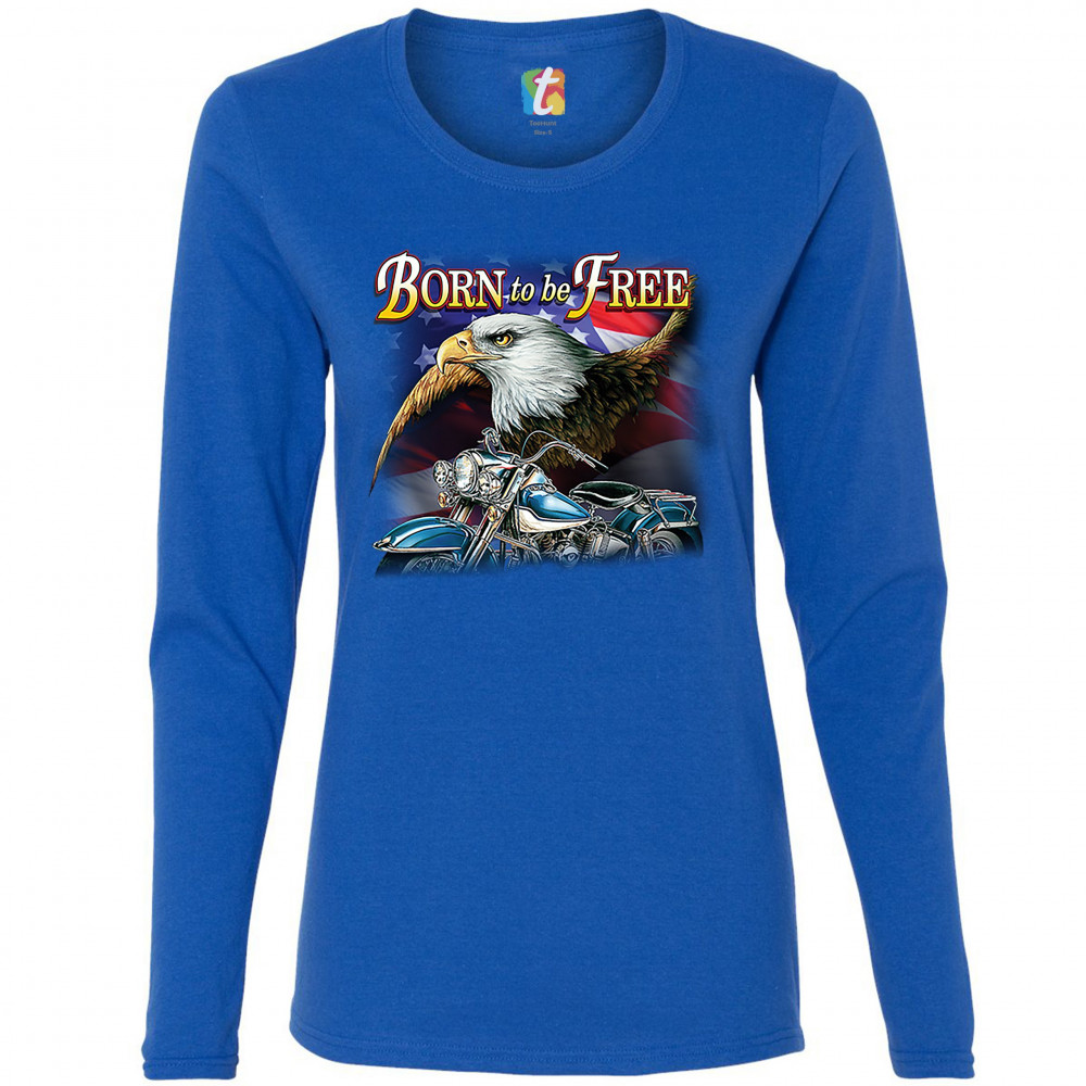 BORN TO BE FREE women's long sleeve t-shirt american bald eagle chopper biker royal blue