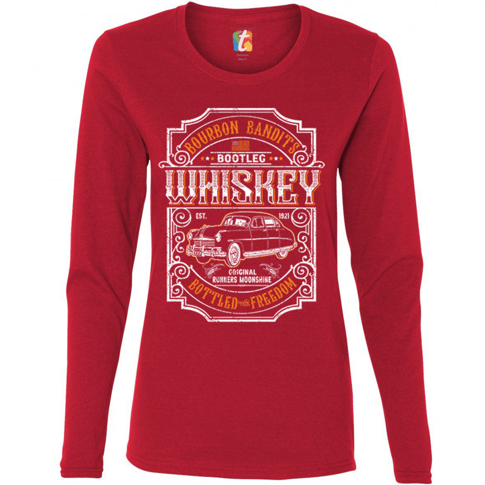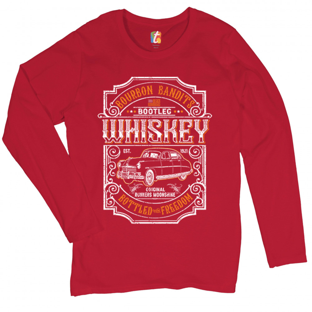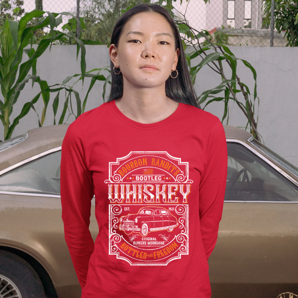 BOURBON BANDIT'S BOOTLEG WHISKEY women's long sleeve t-shirt original moonshine red