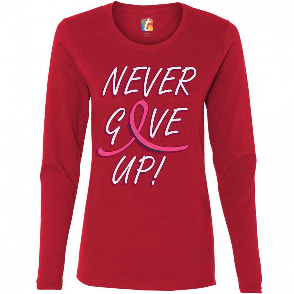 BREAST CANCER AWARENESS NEVER GIVE UP women's long sleeve t-shirt pink ribbon red