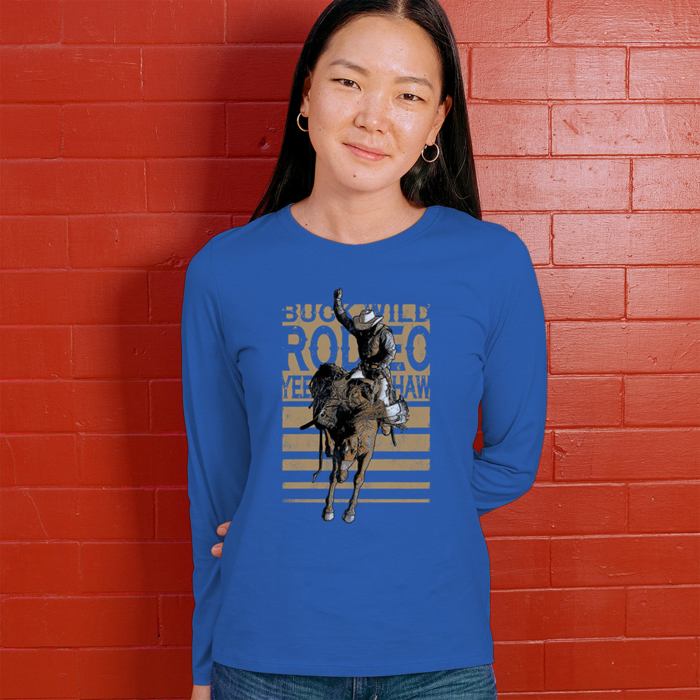 Rodeo bronc rider design with cowboy grit. Western graphic for fans of ranch life, bucking broncos, and rodeo events.