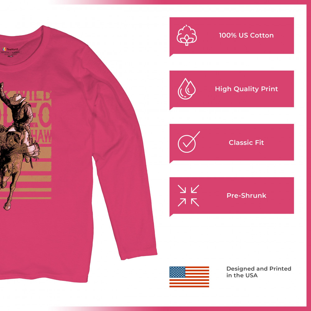 Rodeo bronc rider design with cowboy grit. Western graphic for fans of ranch life, bucking broncos, and rodeo events.