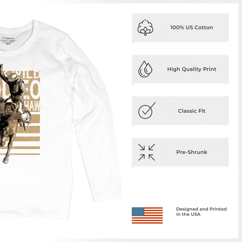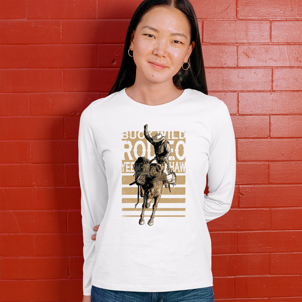 Rodeo bronc rider design with cowboy grit. Western graphic for fans of ranch life, bucking broncos, and rodeo events.