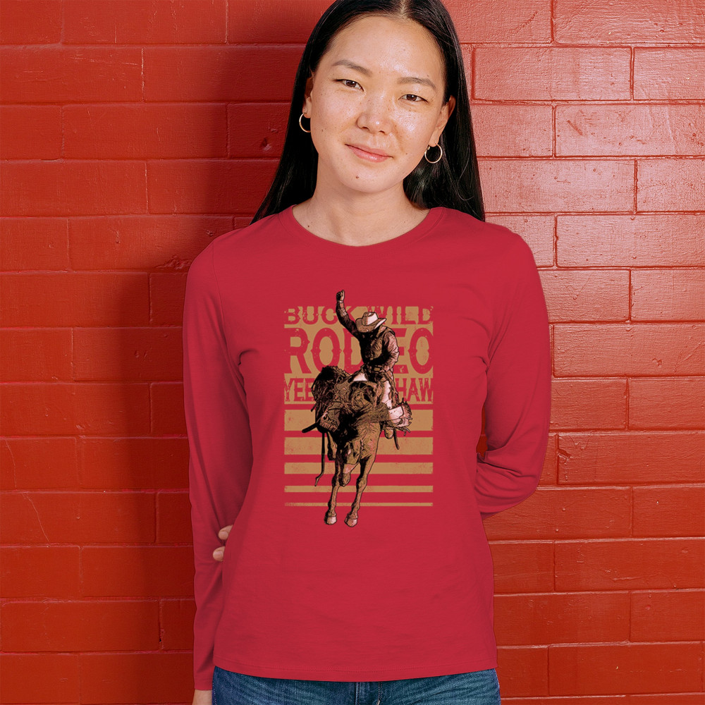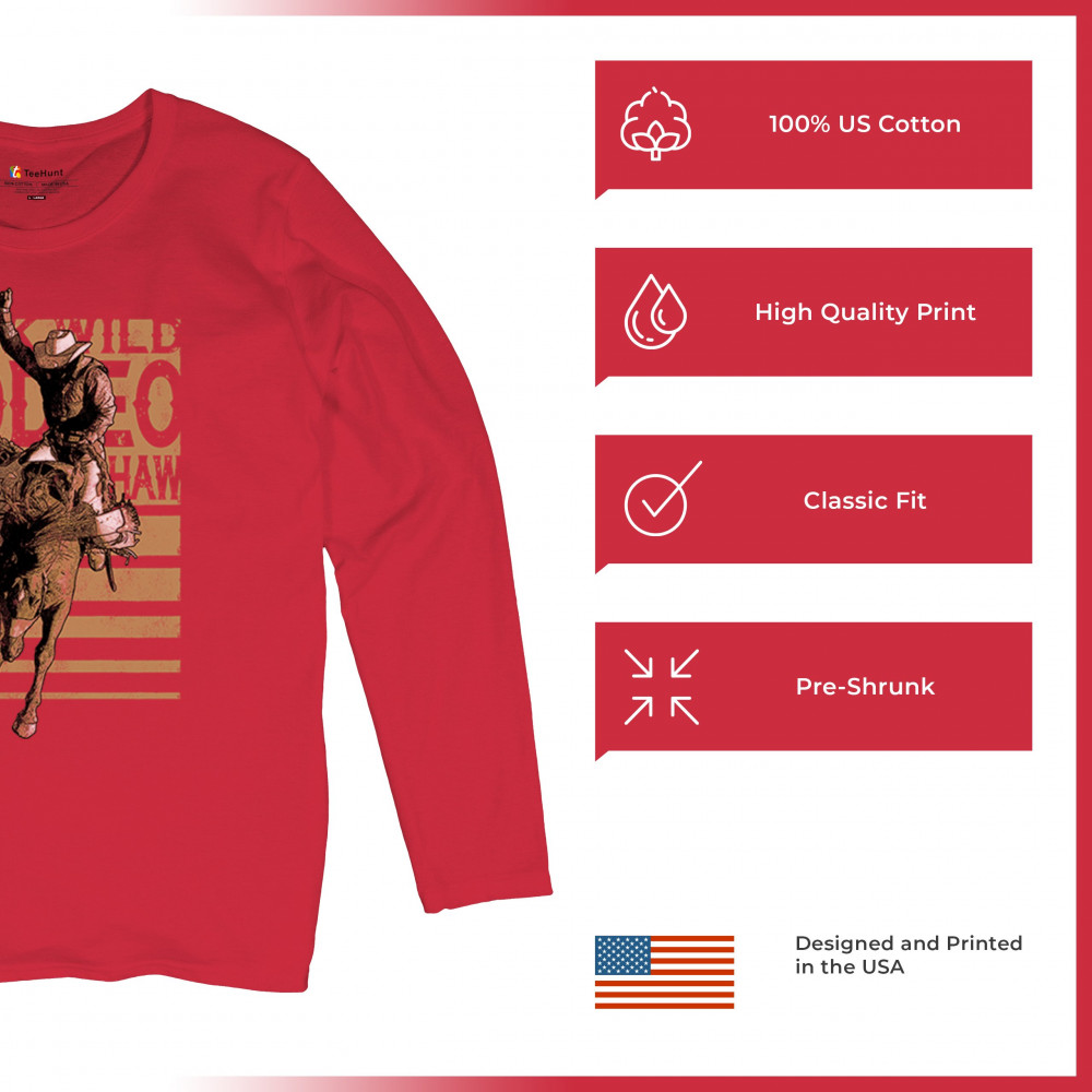 Rodeo bronc rider design with cowboy grit. Western graphic for fans of ranch life, bucking broncos, and rodeo events.