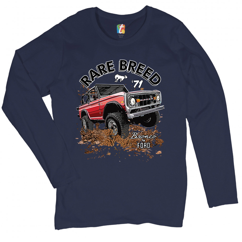 BRONCO BY FORD women's long sleeve t-shirt rare breed '71 ford truck licensed navy blue