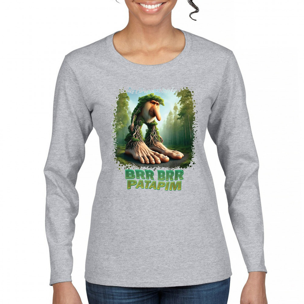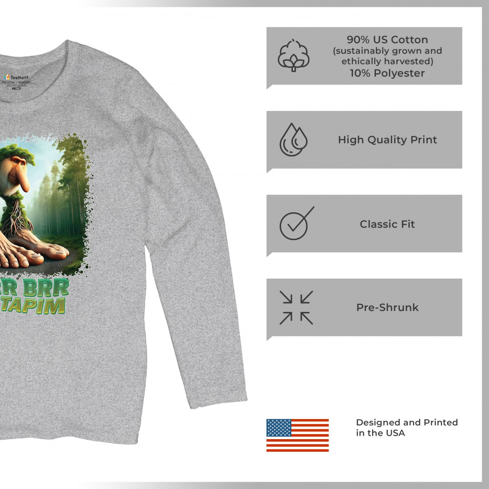 Brr Brr Patapim is forest-core gone full brainrot. Featuring a massive-footed tree-beast with cryptid energy, this design blends cursed meme culture, TikTok humor, weirdcore visuals, and surreal Gen Z fashion. It’s ideal for fans of absurd monster mashups and internet chaos fits.