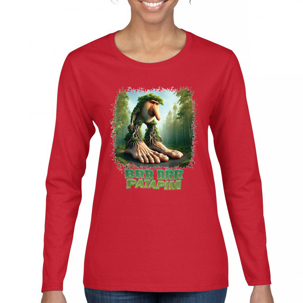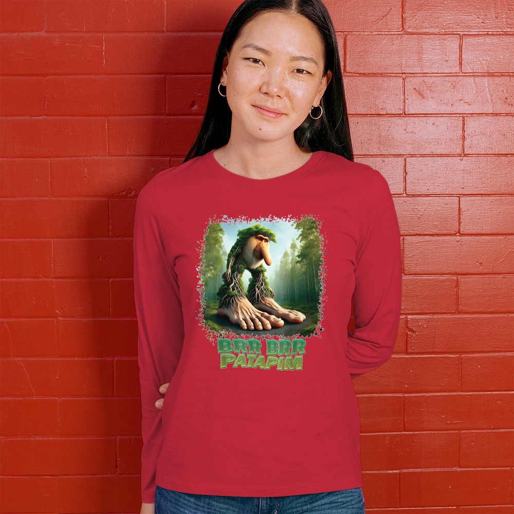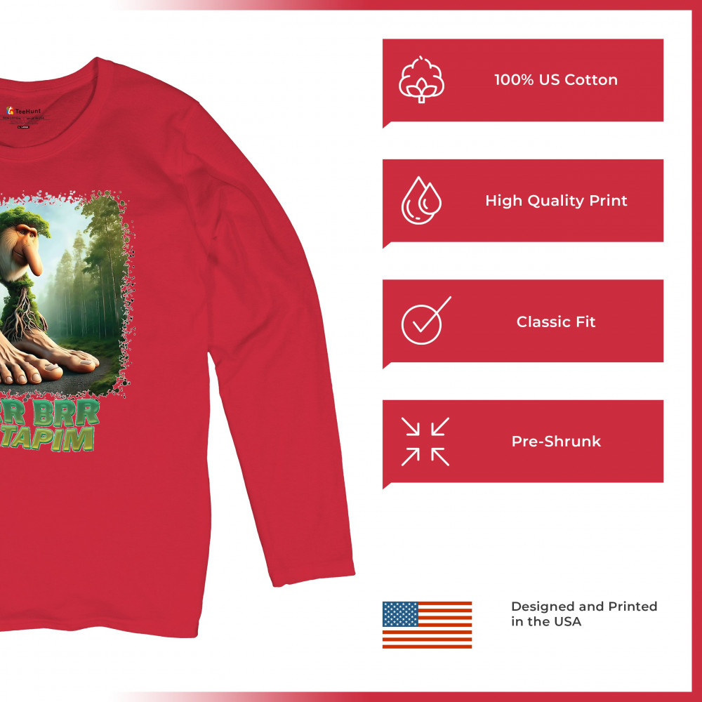 Brr Brr Patapim is forest-core gone full brainrot. Featuring a massive-footed tree-beast with cryptid energy, this design blends cursed meme culture, TikTok humor, weirdcore visuals, and surreal Gen Z fashion. It’s ideal for fans of absurd monster mashups and internet chaos fits.