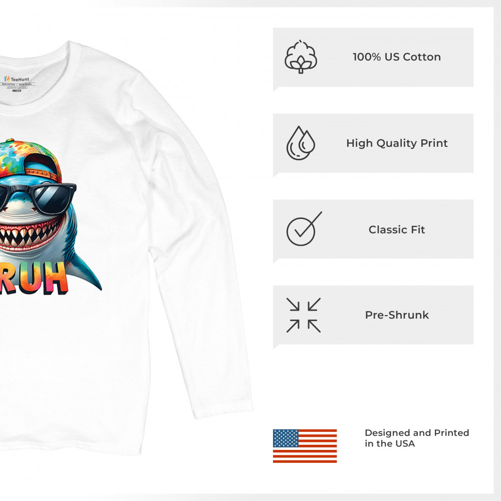 Ride the wave of meme culture with this Bruh Shark Gen Z design, featuring goofy cartoon shark humor, Sigma Aura vibes, and Italian Brainrot energy. Perfect for fans of bruh meme shirts, summer beach vibes, ocean party style, and funny animal meme culture. A must-have for anyone who loves Skibidi Sigma Rizz humor.