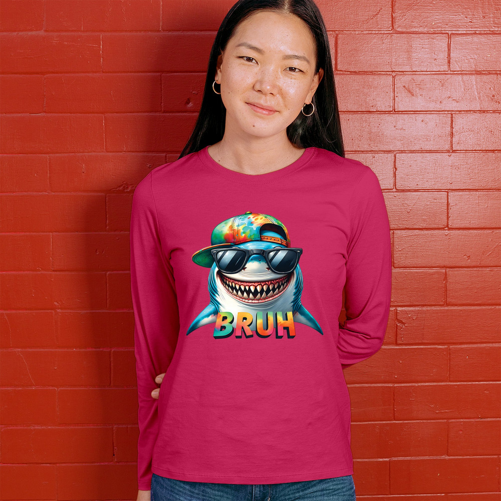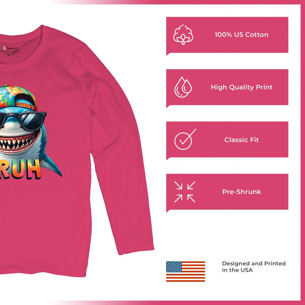 Ride the wave of meme culture with this Bruh Shark Gen Z design, featuring goofy cartoon shark humor, Sigma Aura vibes, and Italian Brainrot energy. Perfect for fans of bruh meme shirts, summer beach vibes, ocean party style, and funny animal meme culture. A must-have for anyone who loves Skibidi Sigma Rizz humor.