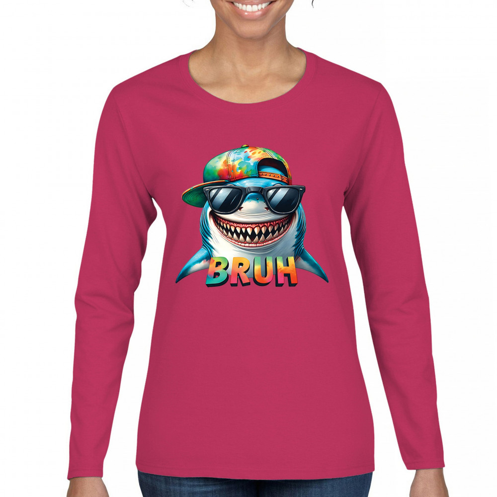 Bruh Shark meme shirt with Gen Z humor, cartoon shark design, summer beach vibes, Sigma Aura, and Italian Brainrot internet humor.