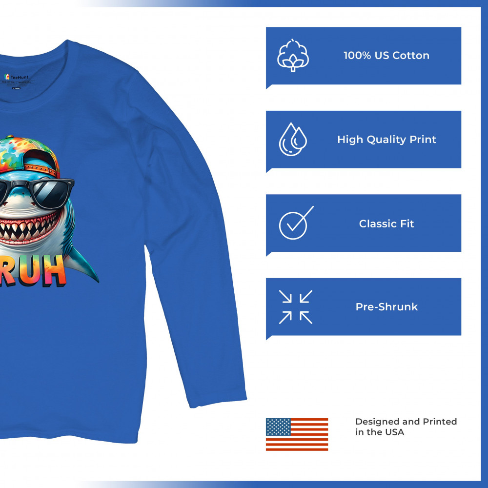 Ride the wave of meme culture with this Bruh Shark Gen Z design, featuring goofy cartoon shark humor, Sigma Aura vibes, and Italian Brainrot energy. Perfect for fans of bruh meme shirts, summer beach vibes, ocean party style, and funny animal meme culture. A must-have for anyone who loves Skibidi Sigma Rizz humor.
