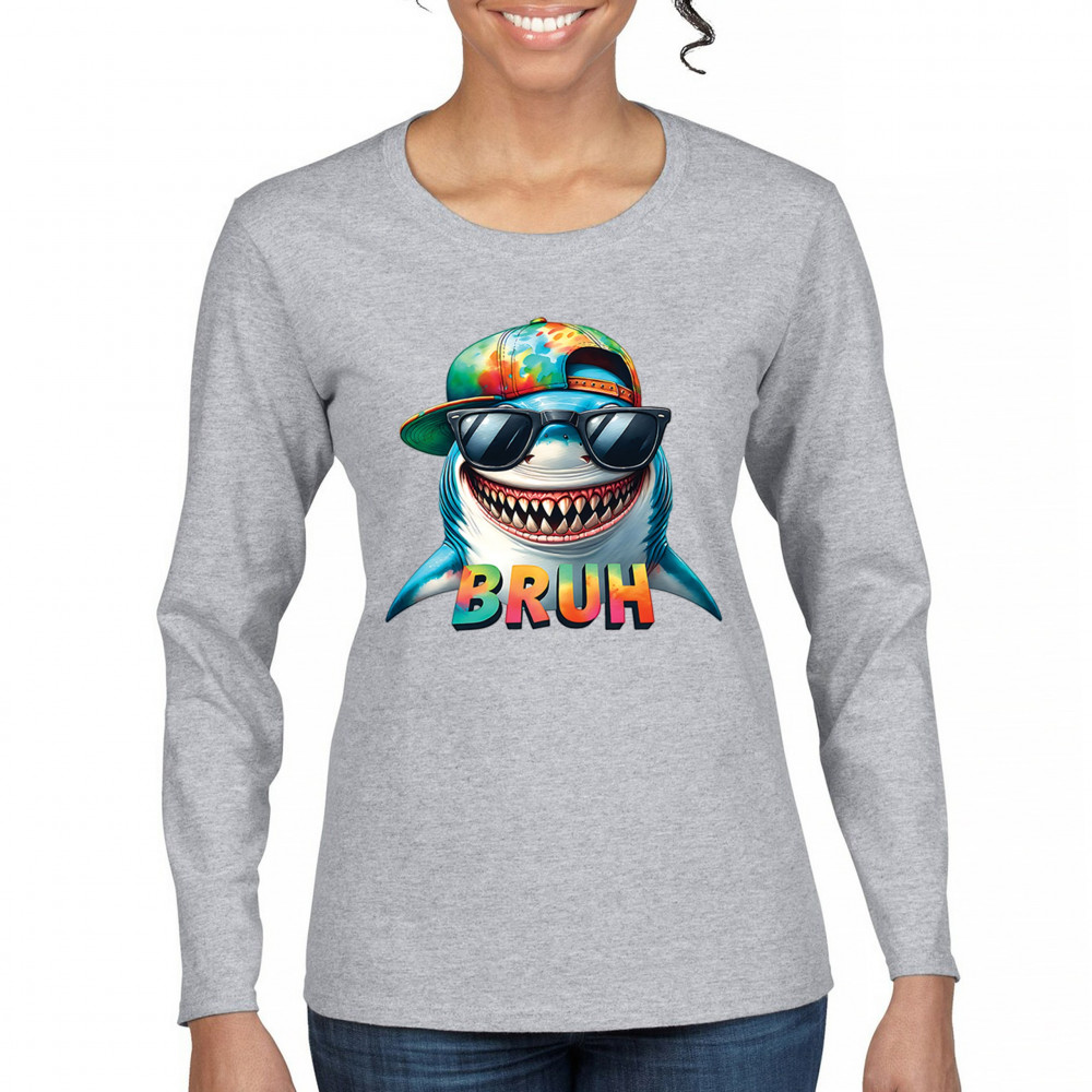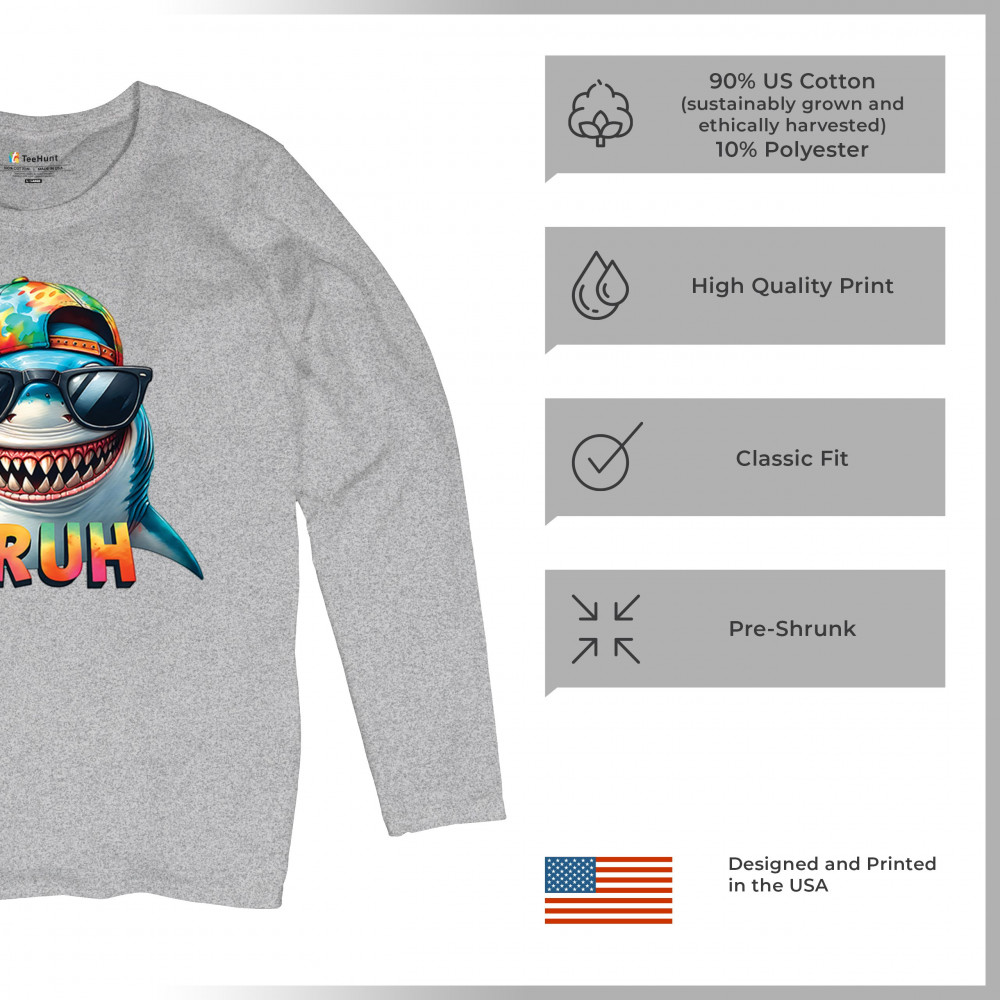 Ride the wave of meme culture with this Bruh Shark Gen Z design, featuring goofy cartoon shark humor, Sigma Aura vibes, and Italian Brainrot energy. Perfect for fans of bruh meme shirts, summer beach vibes, ocean party style, and funny animal meme culture. A must-have for anyone who loves Skibidi Sigma Rizz humor.