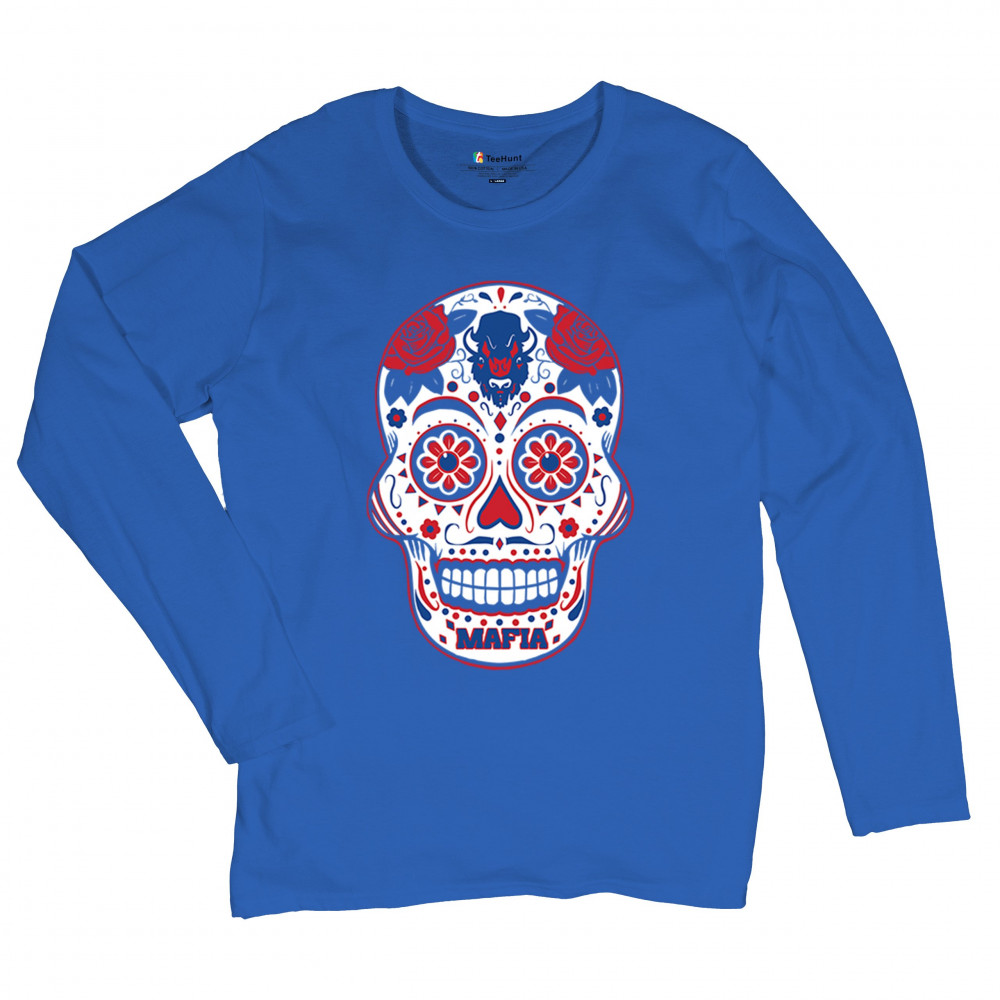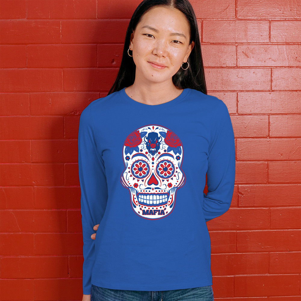 Celebrate Buffalo football with this Sugar Skull design inspired by Dia de los Muertos. Featuring NY Bleed Blue toughness, Northern Grit, and Queen City spirit, it’s made for tailgate parties, playoff energy, and fantasy football rivalries. A bold calavera for true Buffalo fans who live Game Day pride.