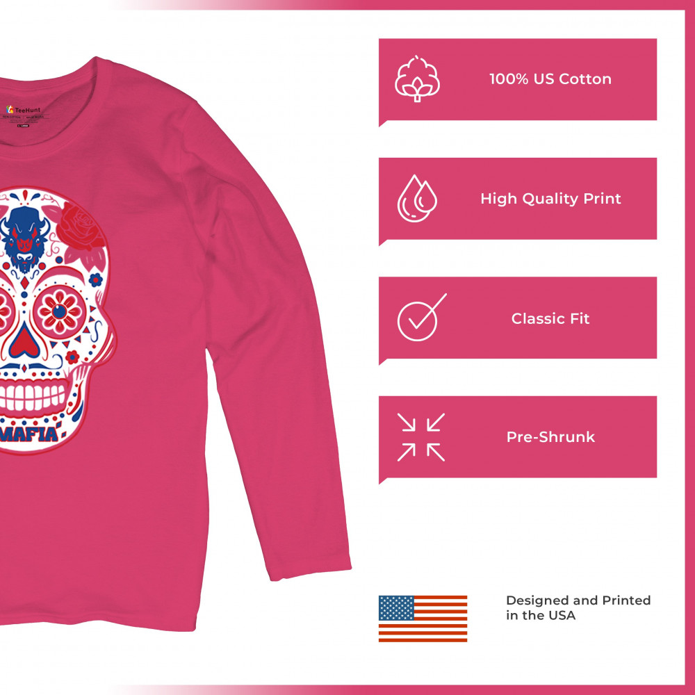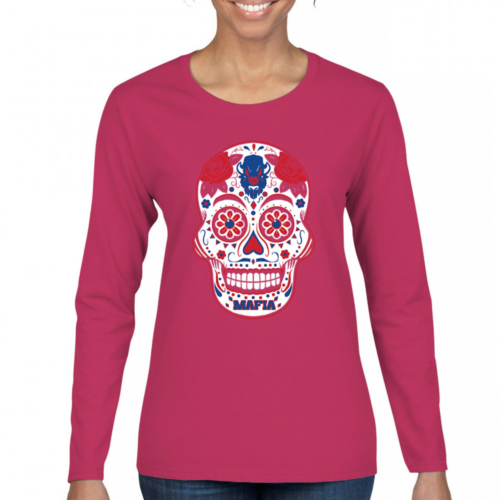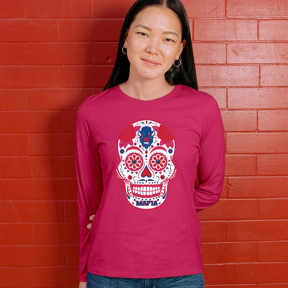 Celebrate Buffalo football with this Sugar Skull design inspired by Dia de los Muertos. Featuring NY Bleed Blue toughness, Northern Grit, and Queen City spirit, it’s made for tailgate parties, playoff energy, and fantasy football rivalries. A bold calavera for true Buffalo fans who live Game Day pride.