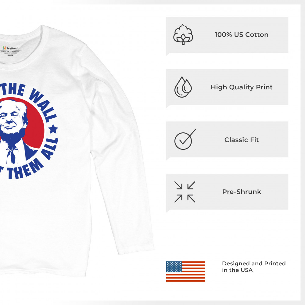 Showcase your unwavering support with a bold design that champions America first. Featuring the "Build the Wall Deport Them All Trump 2024" message, this piece is a must-have for conservatives, symbolizing trust in God over government, and a commitment to never surrender. Adorned with the American flag and a call to rebelution, it's perfect for any Trump supporter ready to stand against the tide.