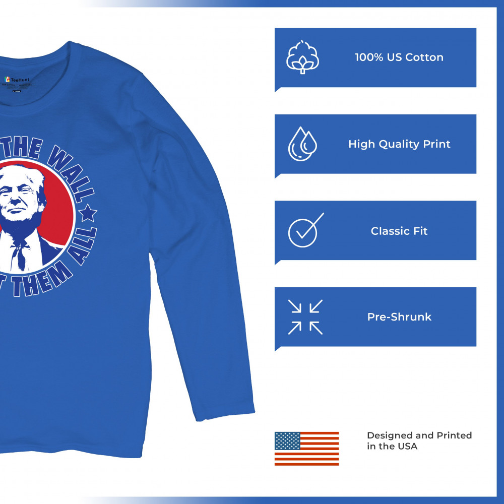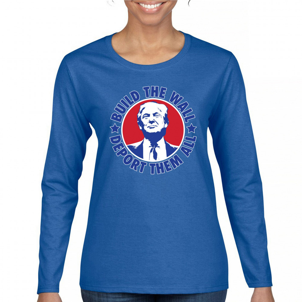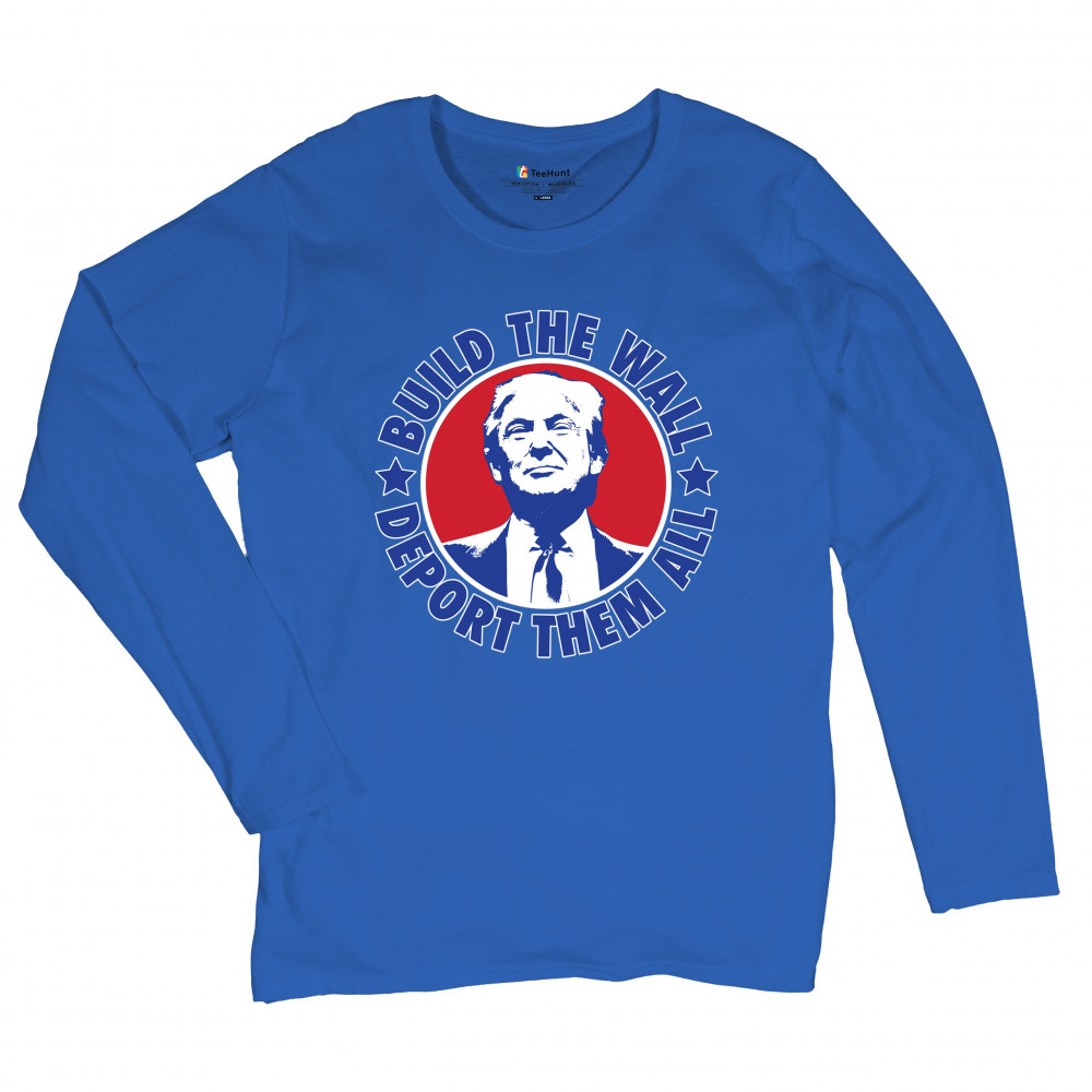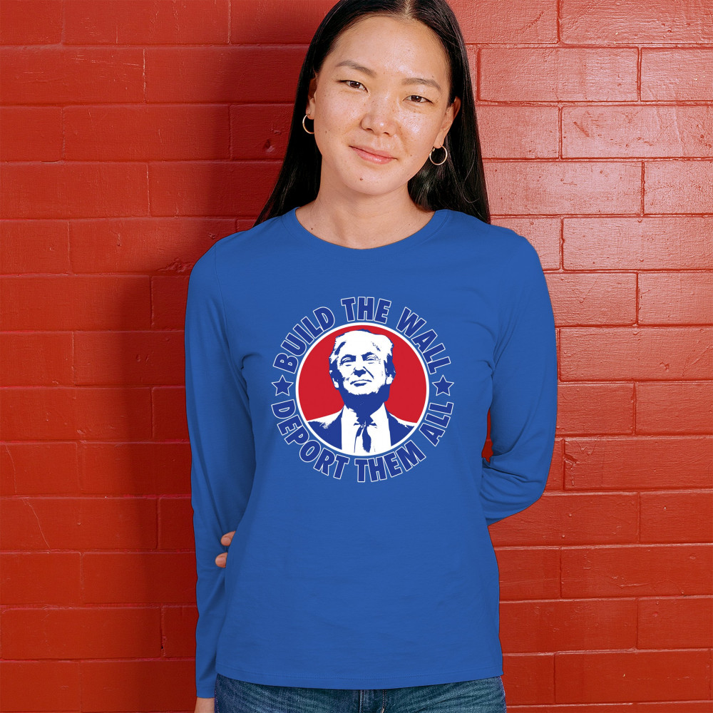 Showcase your unwavering support with a bold design that champions America first. Featuring the "Build the Wall Deport Them All Trump 2024" message, this piece is a must-have for conservatives, symbolizing trust in God over government, and a commitment to never surrender. Adorned with the American flag and a call to rebelution, it's perfect for any Trump supporter ready to stand against the tide.