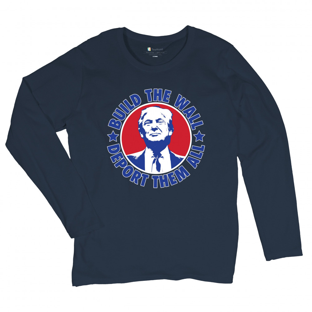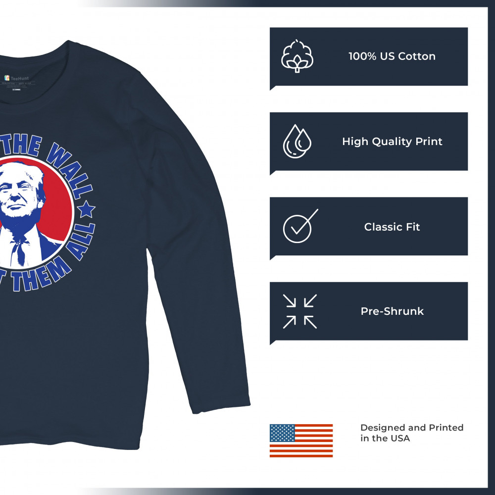 Showcase your unwavering support with a bold design that champions America first. Featuring the "Build the Wall Deport Them All Trump 2024" message, this piece is a must-have for conservatives, symbolizing trust in God over government, and a commitment to never surrender. Adorned with the American flag and a call to rebelution, it's perfect for any Trump supporter ready to stand against the tide.