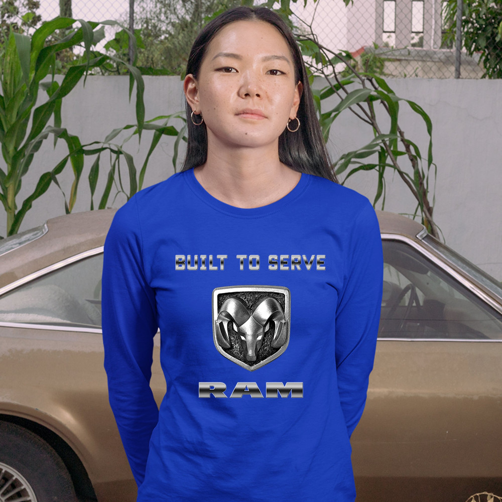 BUILT TO SERVE RAM women's long sleeve t-shirt licensed guts and glory ram royal blue