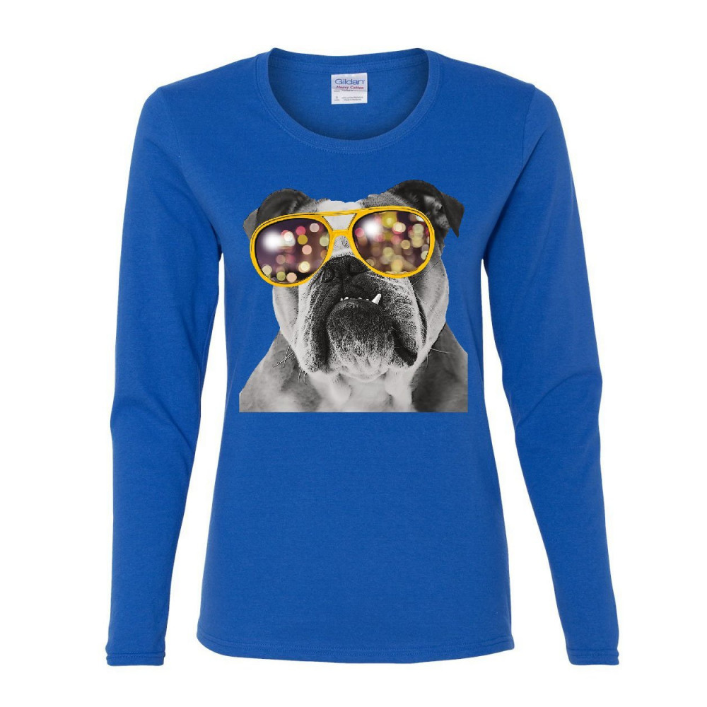 BULLDOG WEARING GLASSES women's long sleeve tee cute dog swag pet lovers urban royal blue