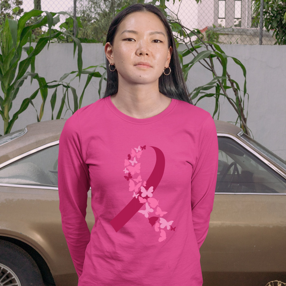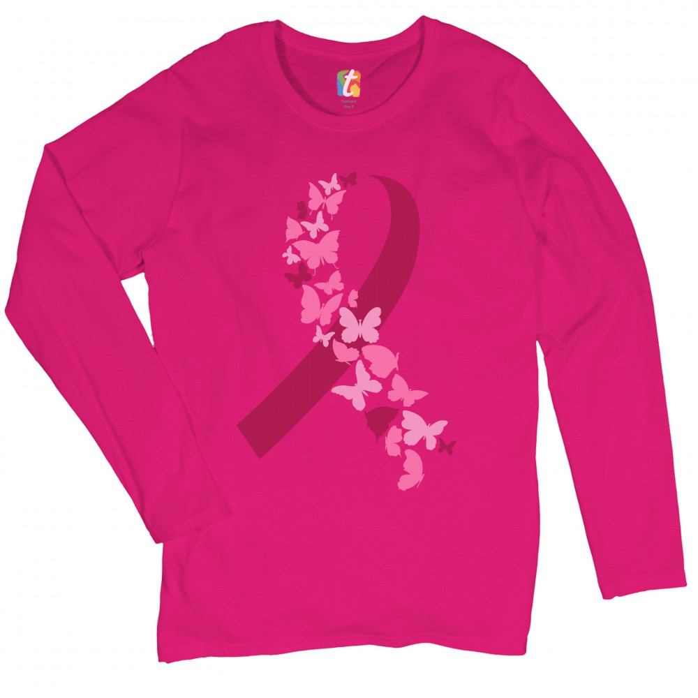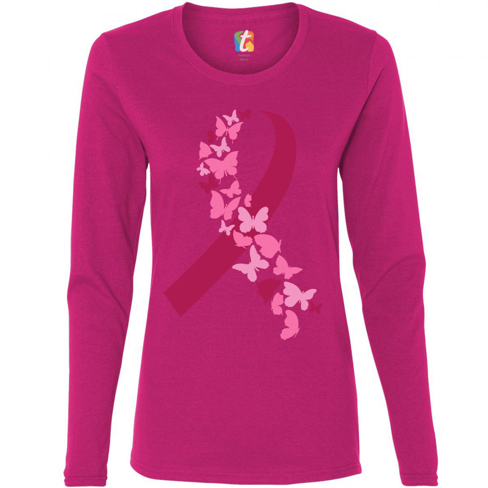 BUTTERFLIES PINK RIBBON women's long sleeve t-shirt breast cancer awareness pink