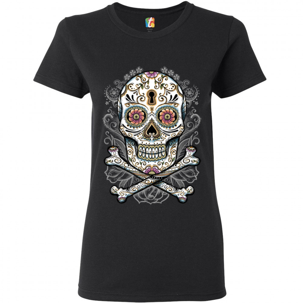 CALAVERA SUGAR SKULL t-shirt mexican day of the dead dia de muertos women's tee black