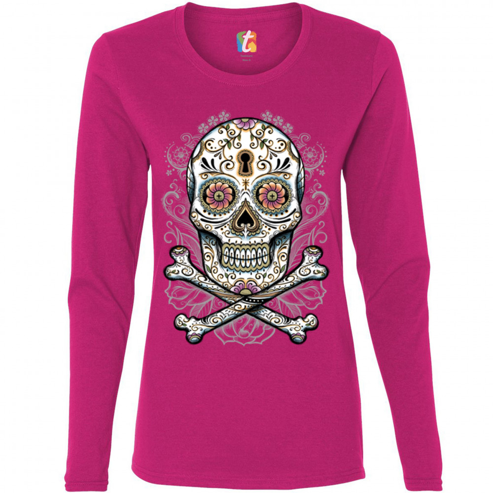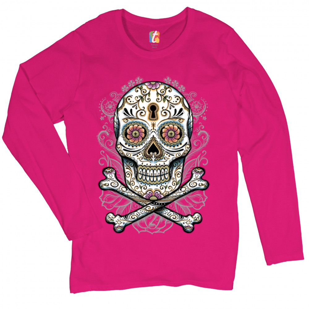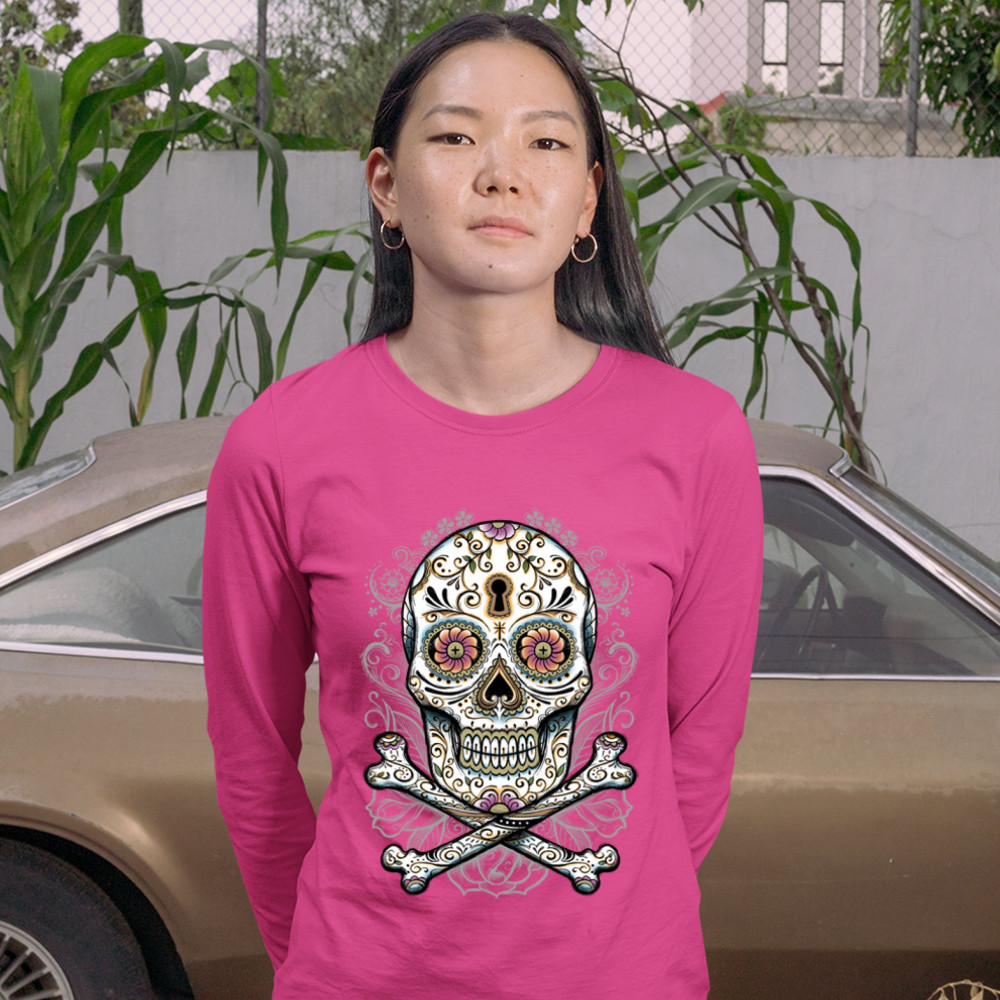 CALAVERA SUGAR SKULL women's long sleeve t-shirt mexican day of the dead pink
