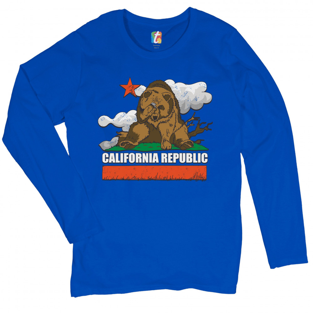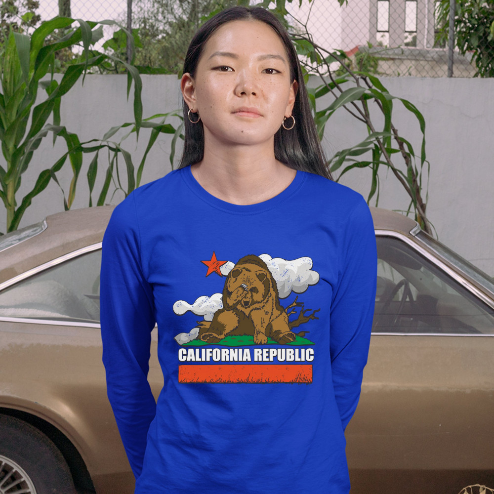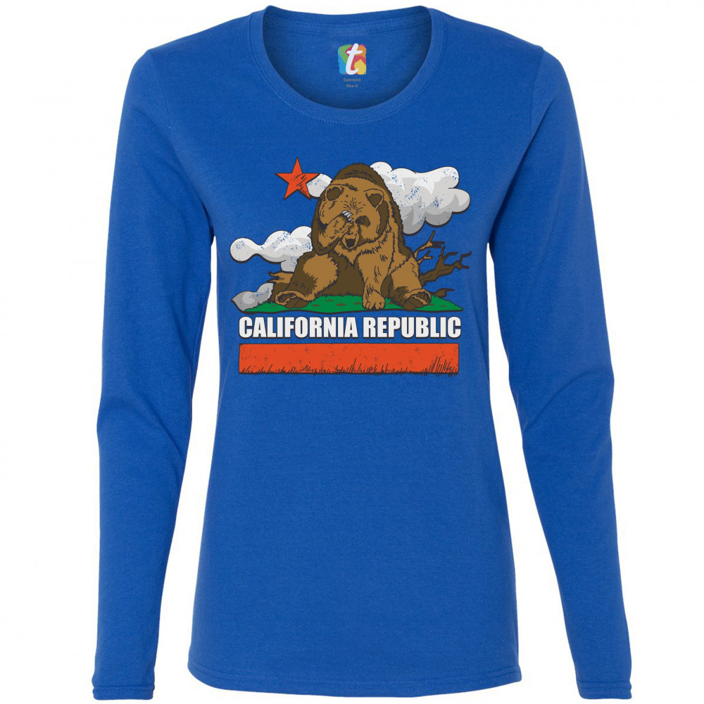CALIFORNIA BEAR FACEPALM women's long sleeve t-shirt great california exodus royal blue