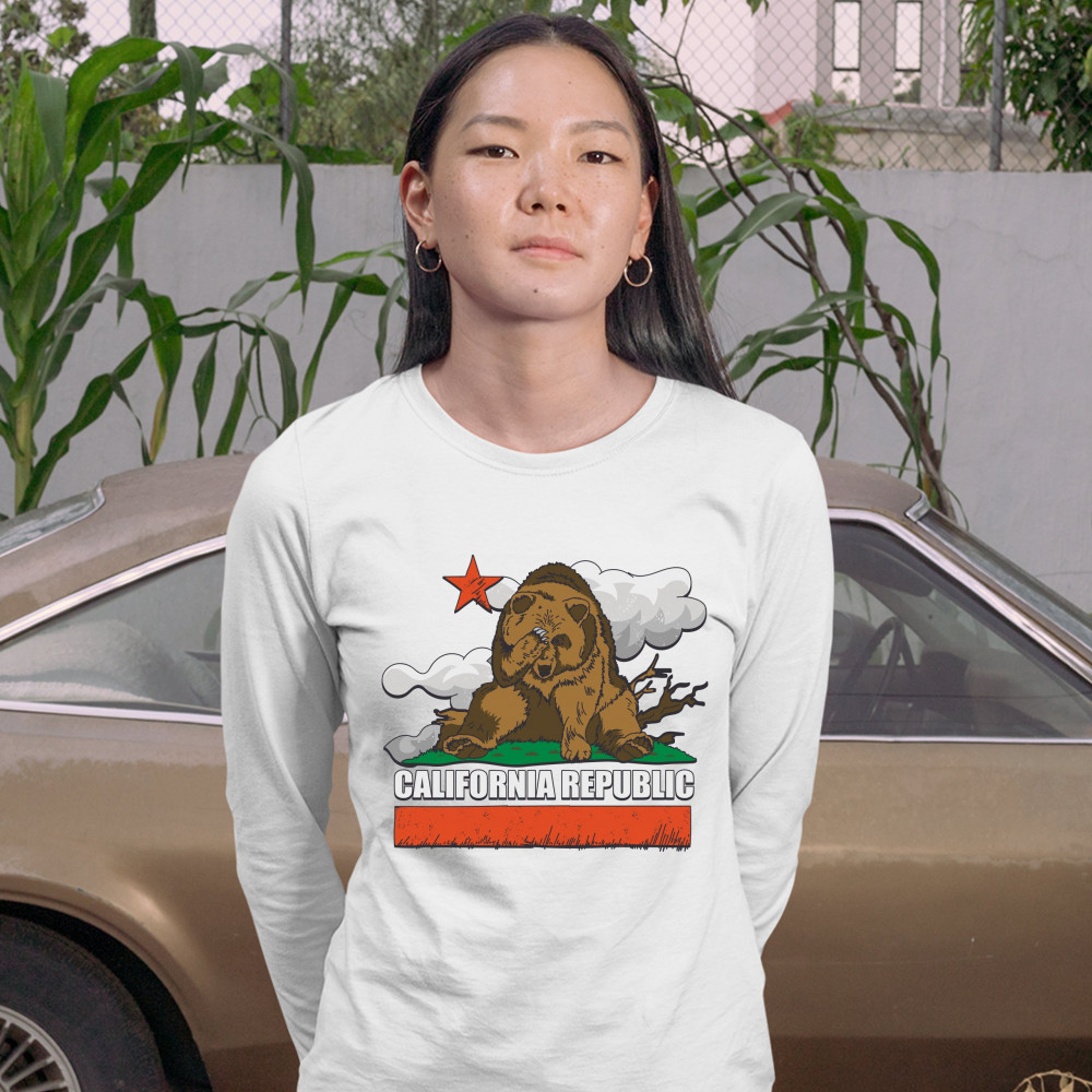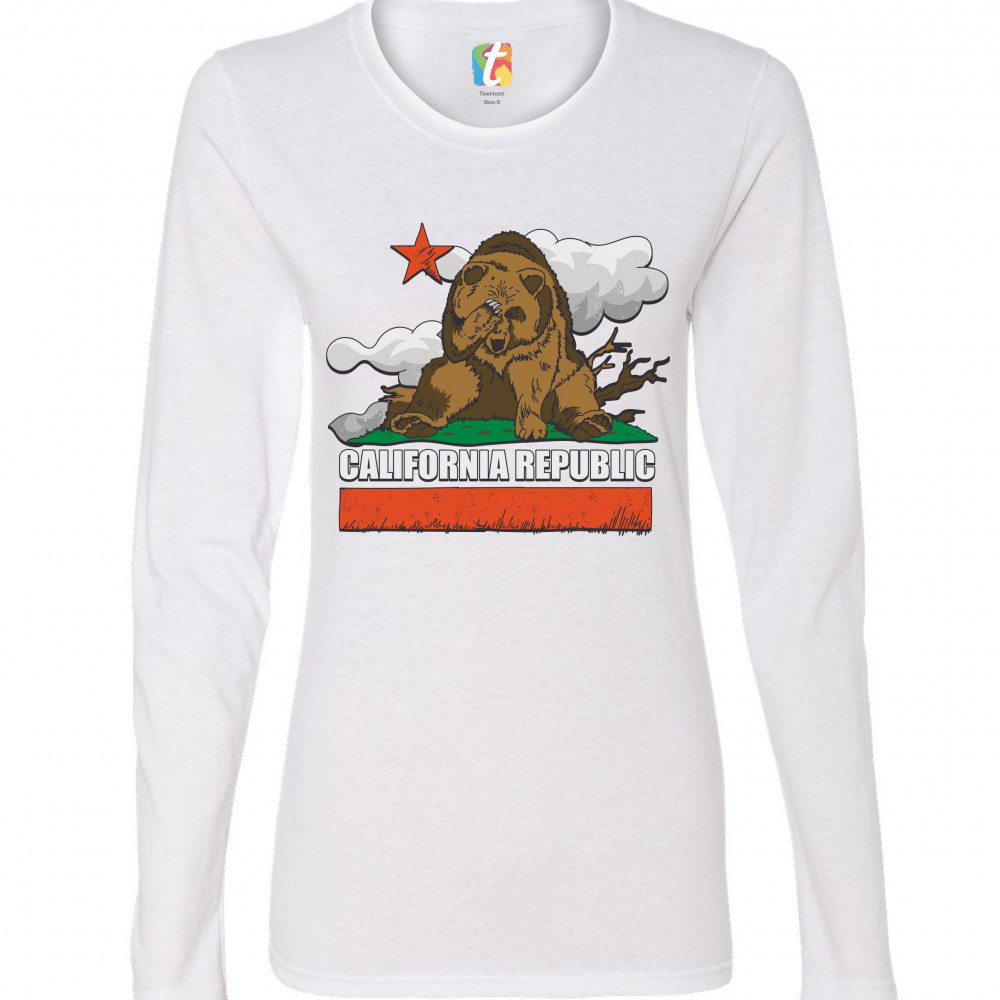 CALIFORNIA BEAR FACEPALM women's long sleeve t-shirt great california exodus white