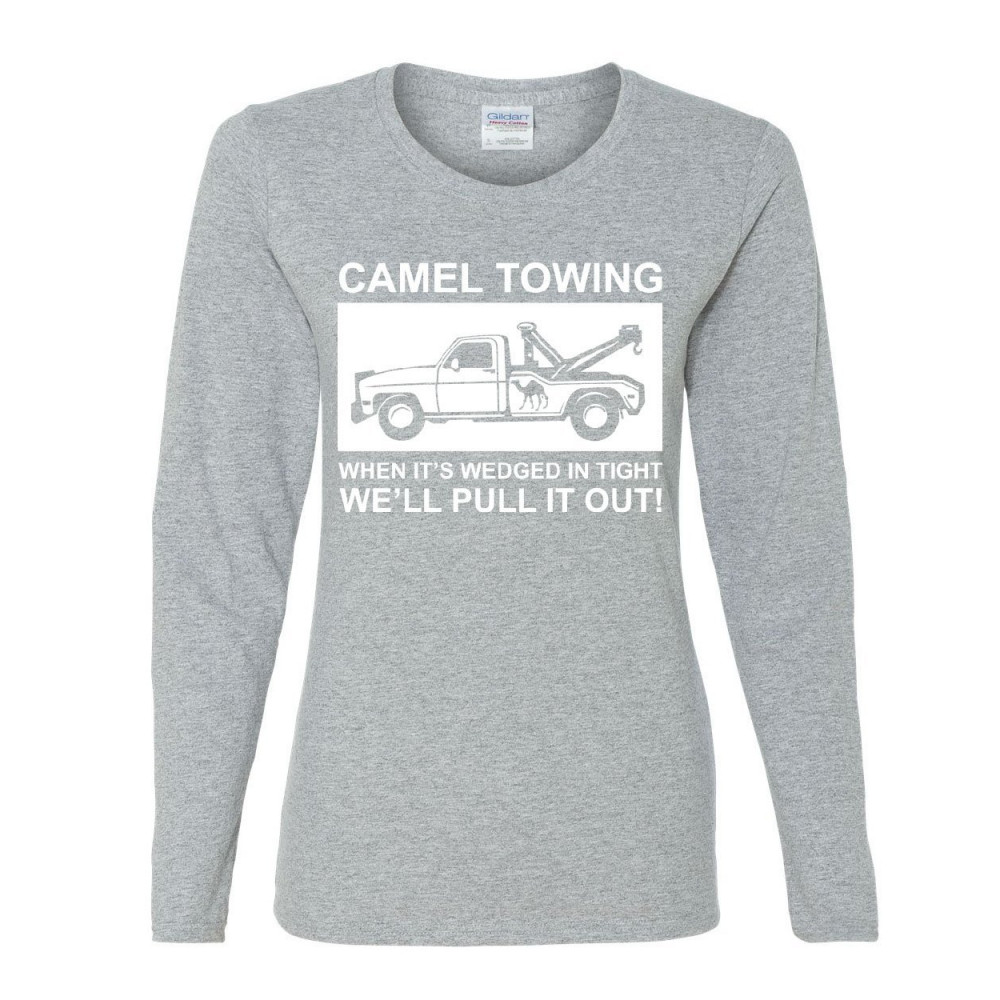 CAMEL TOWING PULL IT OUT women's long sleeve tee funny naughty adult camel toe gray